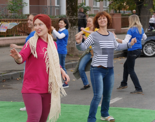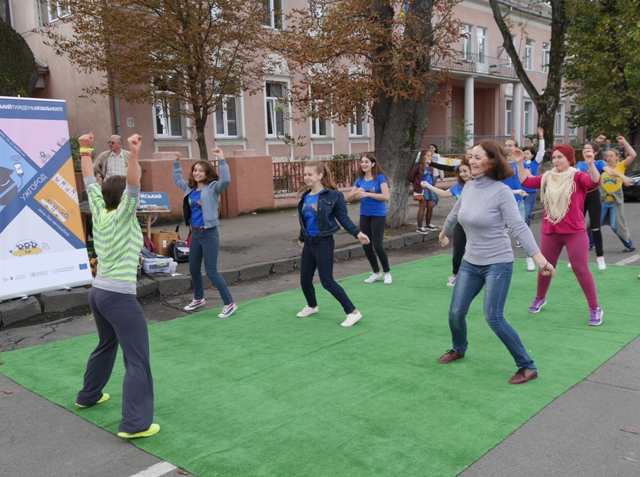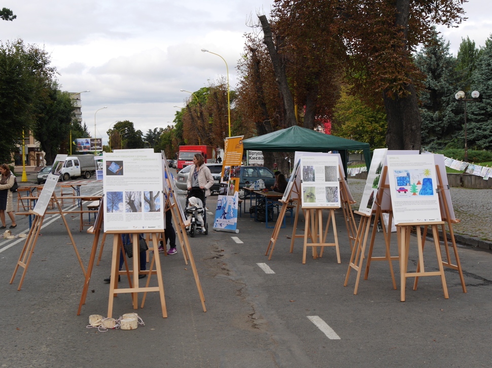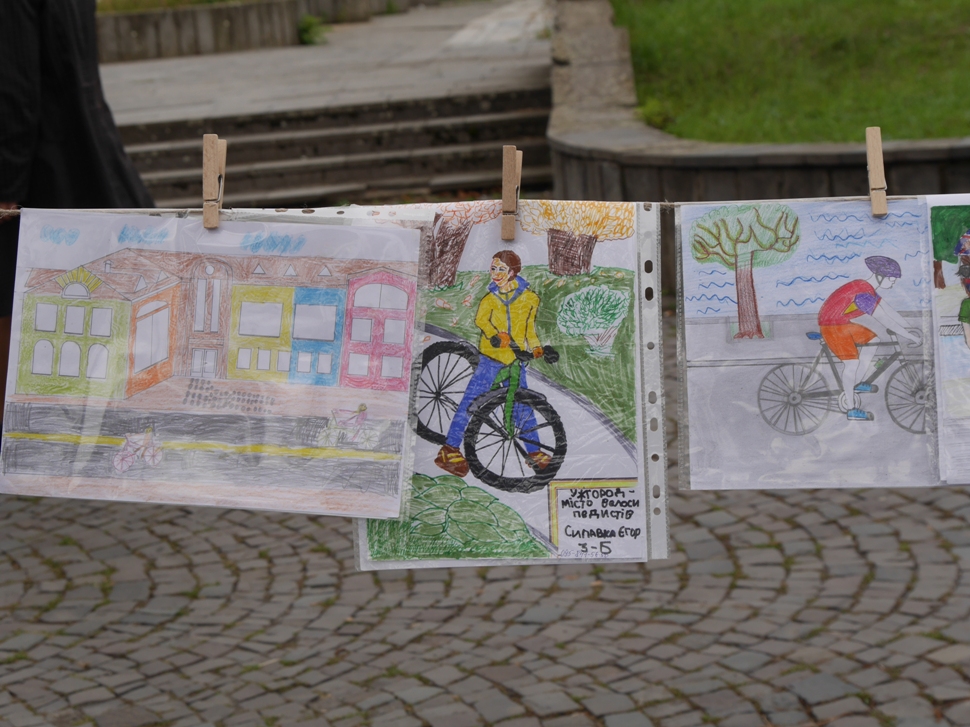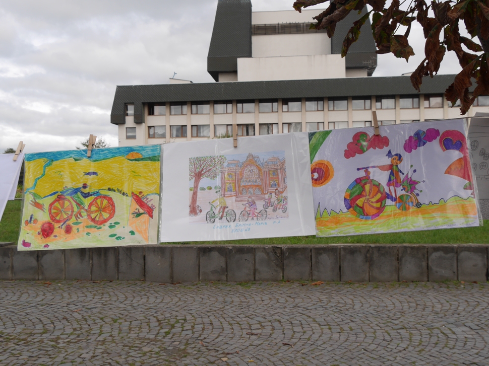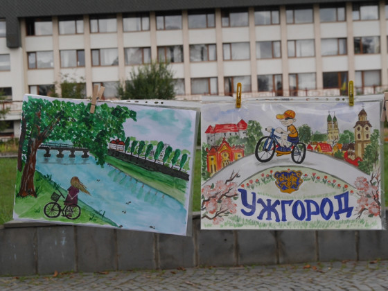 На імпровізованій міні-сцені проходили майстер-класи із зумби та йоги, танців для дітей. Майже через всю локацію простягнулася виставка дитячих малюнків «Ужгород – велосипедне місто».