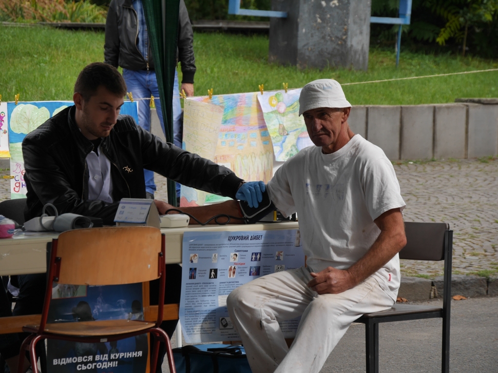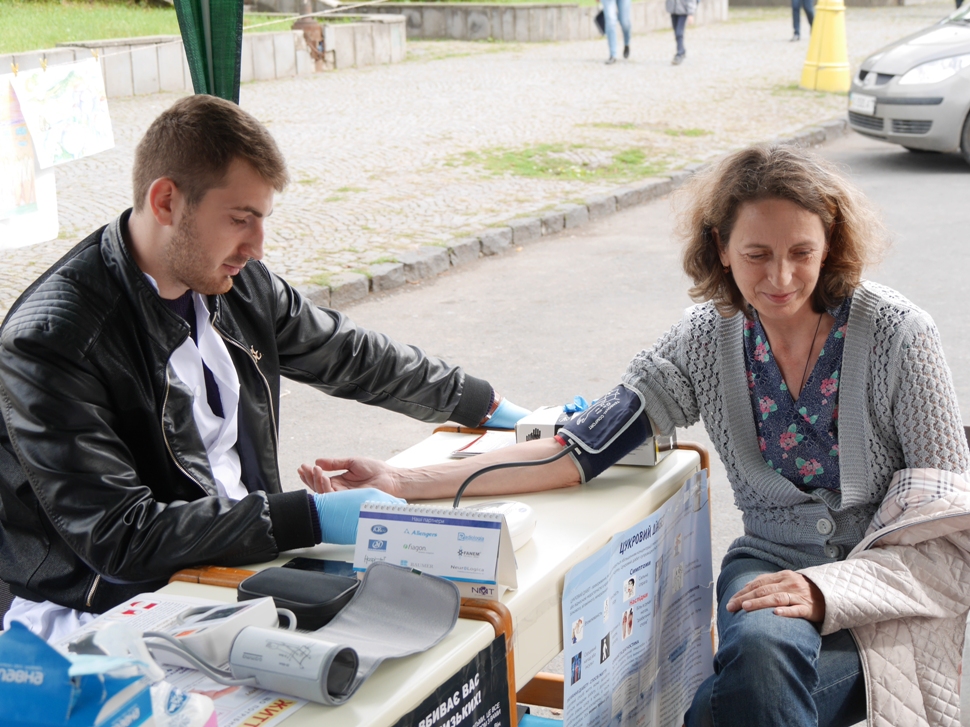 Чимало ужгородців скористалися послугами намету медиків, де вимірювали тиск, рівень цукру, консультували щодо здорового способу життя, роздавали інформаційні буклети.