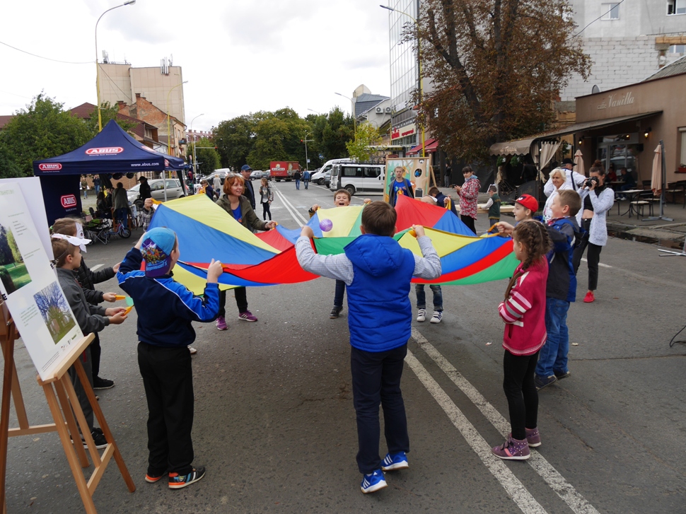 Також на вулиці розгорнули багато різноманітних локацій, особливо для діток. Наприклад, можна було малювали на асфальті, власноруч зробити закладки для книг, маски, скласти мапу Закарпаття, взяти участь у квестах, іграх, перегонах. Представники патрульної поліції разом із дитячим патрулем пояснювали діткам правила дорожнього руху, як переходити дорогу, демонстрували дорожні знаки, розповідали, як убезпечити велосипеди від крадіжки. Працював і намет, у якому давали поради з ремонту велосипедів, можна було подивитися засоби захисту та аксесуари для двоколісних.