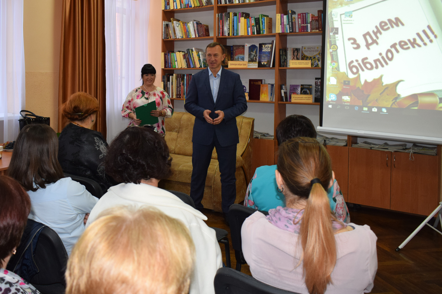 Працівників бібліотечної сфери привітав і міський голова Богдан Андріїв. «Моя мама свого часу теж працювала у бібліотеці, тому мені сьогодні дуже приємно бути тут і вітати вас зі святом. Незважаючи на те, що ми живемо у час інформаційних технологій, які постійно розвиваються, і сучасні діти, молодь, багато часу проводять за різними гаджетами, ніщо не може замінити книгу і ті відчуття, коли читаєш, гортаючи сторінки захоплюючого твору. Ваша робота – дуже важлива, цінна, щиро вам за це дякую», – сказав Богдан Євстафійович.