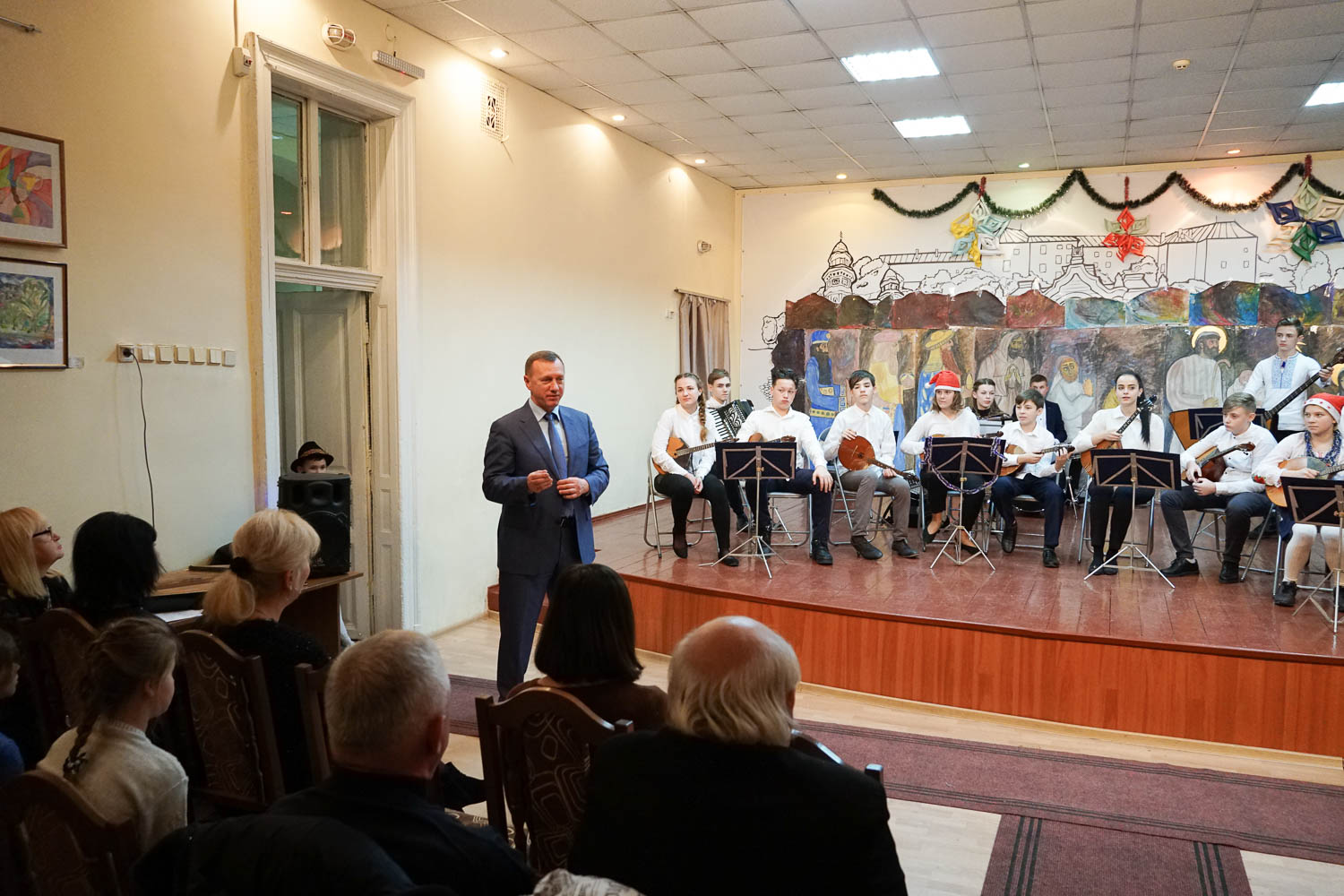 Привітав Богдан Андріїв усіх присутніх і з прийдешніми новорічно-різдвяними святами, побажав учням із новими силами уже в 2020-му повернутися до занять, крім того, передав їм квитки на новорічну виставу.