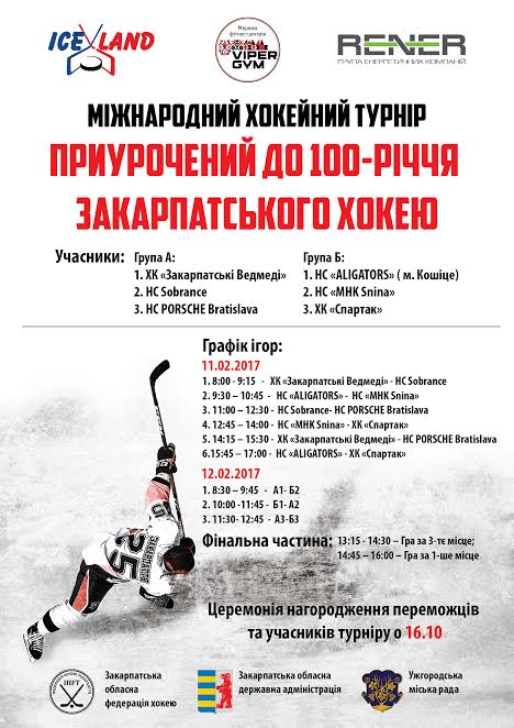 Як проходитиме Міжнародний турнір із хокею цими вихідними, 11-12 лютого, в Ужгороді на ковзанці «Ice Land», сьогодні розповіли на прес-конференції організатори льодових змагань – начальник управління молоді та спорту Закарпатської ОДА Віталій Ерфан, президент Федерації хокею Закарпаття Василь Ябрик та ветеран команди “Спартак-46” Ігор Черкашин.