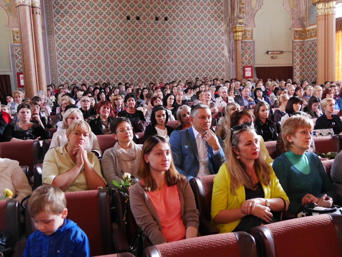 День працівників освіти, або ж День учителя відзначатиметься в Україні цієї неділі, 1 жовтня. Сьогодні у Закарпатській обласній філармонії педагогічних працівників Ужгорода вітали керівники міста – міський голова Богдан Андріїв, його заступники Ігор Фартушок, Олександр Білак, Василь Гомонай, керуючий справами виконкому Олена Макара, секретар міськради Андріана Сушко.