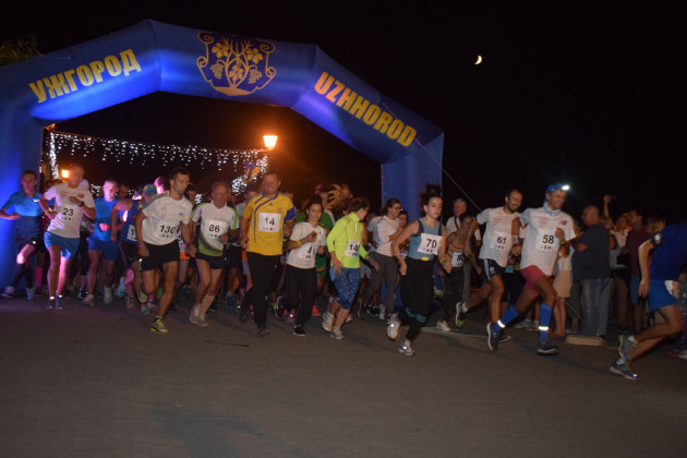 Майже півтори сотні ужгородців долучилися до легкоатлетичного нічного забігу, який стартував сьогодні о 21.00 з площі Театральної. Представники ДЮСШ №1 м. Ужгород, «Uzhhorod running club» та усі охочі бігли за маршрутом площа Театральна – набережна Незалежності – транспортний міст Масарика – Київська набережна – площа Театральна. Усі учасники мали номери-наліпки з логотипом Ужгорода та браслети, які світяться у темряві. Переможці та призери забігу отримали пам’ятні статуетки та медалі.