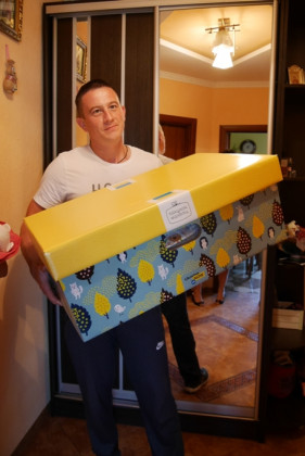 Оскільки доставка на місця по всій Україні дещо затрималася, в Ужгороді департамент соціального захисту населення міськради отримав перші бокси лише вранці, почали їх сьогодні передавати батькам, у яких діти народилися на початку вересня і які подали заяви про бажання отримати набір.