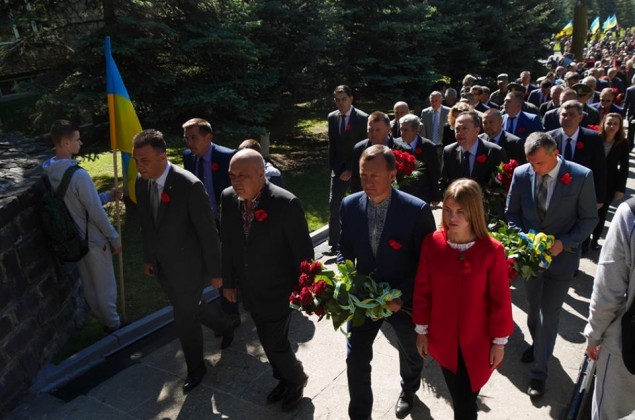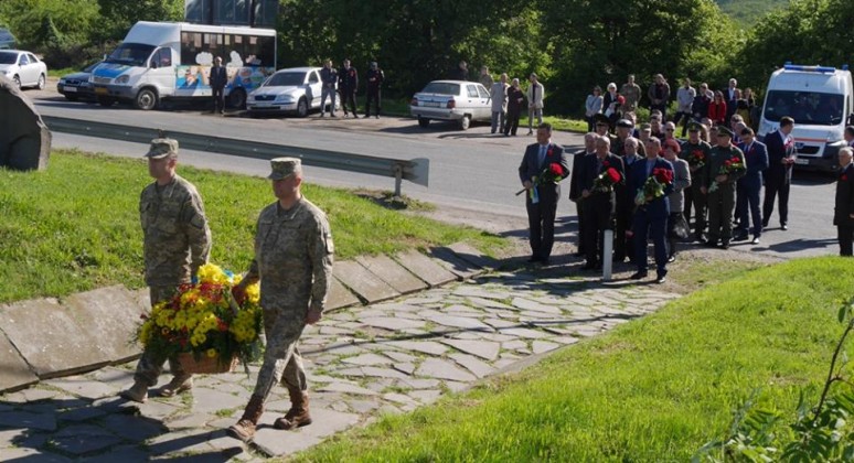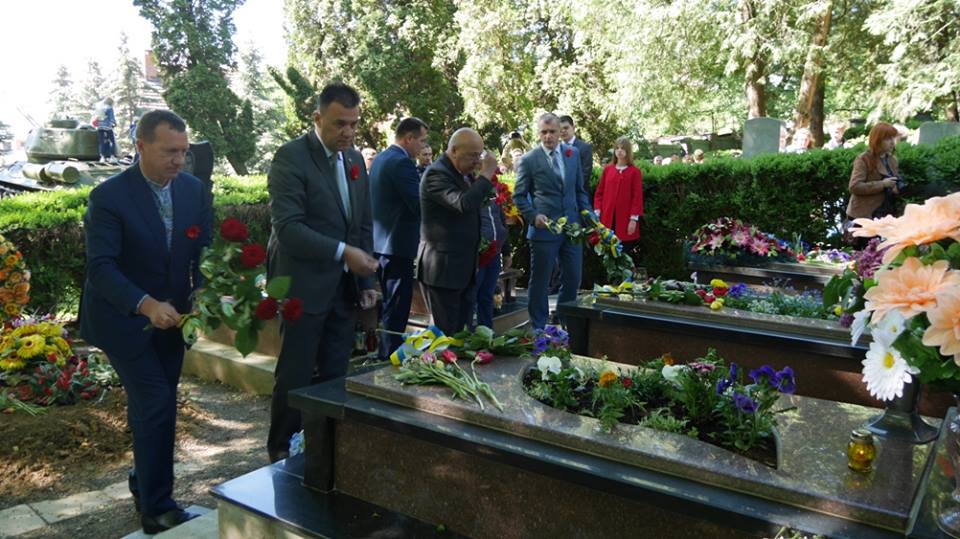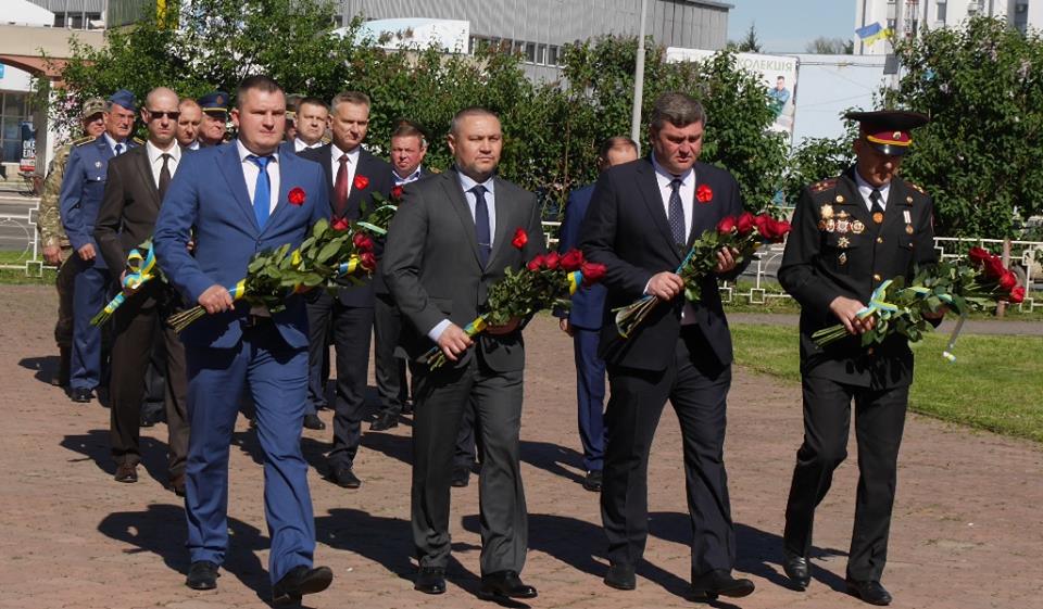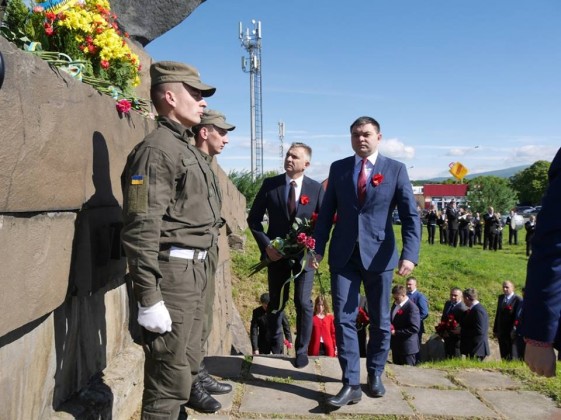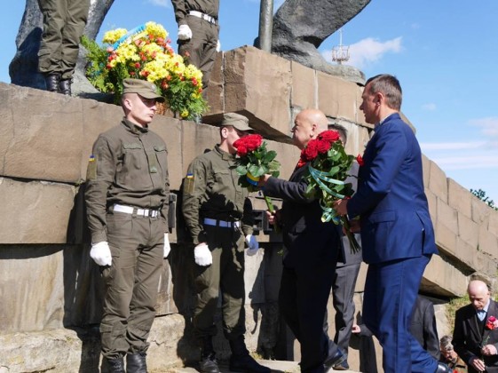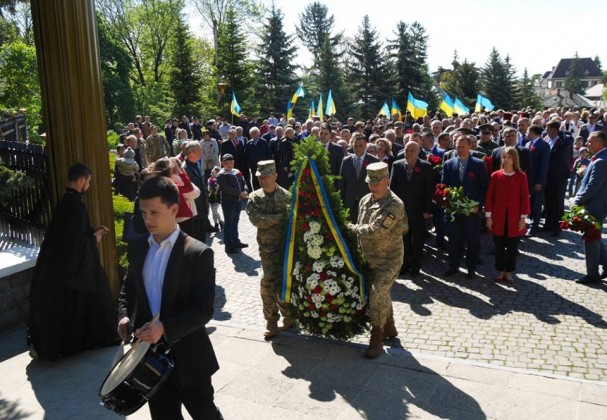 Голова Закарпатської обласної адміністрації Геннадій Москаль, голова Закарпатської обласної ради Михайло Рівіс, Ужгородський міський голова Богдан Андріїв поклали квіти до могил загиблих в АТО на сході України закарпатців та до Вічного вогню.