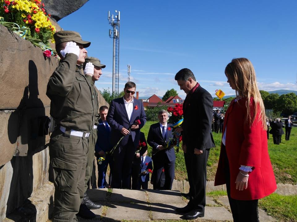 За традицією урочистості розпочалися біля пам’ятника “Україна – визволителям”, що біля українсько-словацького кордону, де представники обласної та міської влади, ветеранських організацій, керівники правоохоронних, силових та контролюючих структур вшанували загиблих у Другій Світовій війні. Продовжили заходи покладанням квітів до пам’ятника «Добровольцям Закарпаття – учасникам Другої світової війни» на площі Кирила та Мефодія.