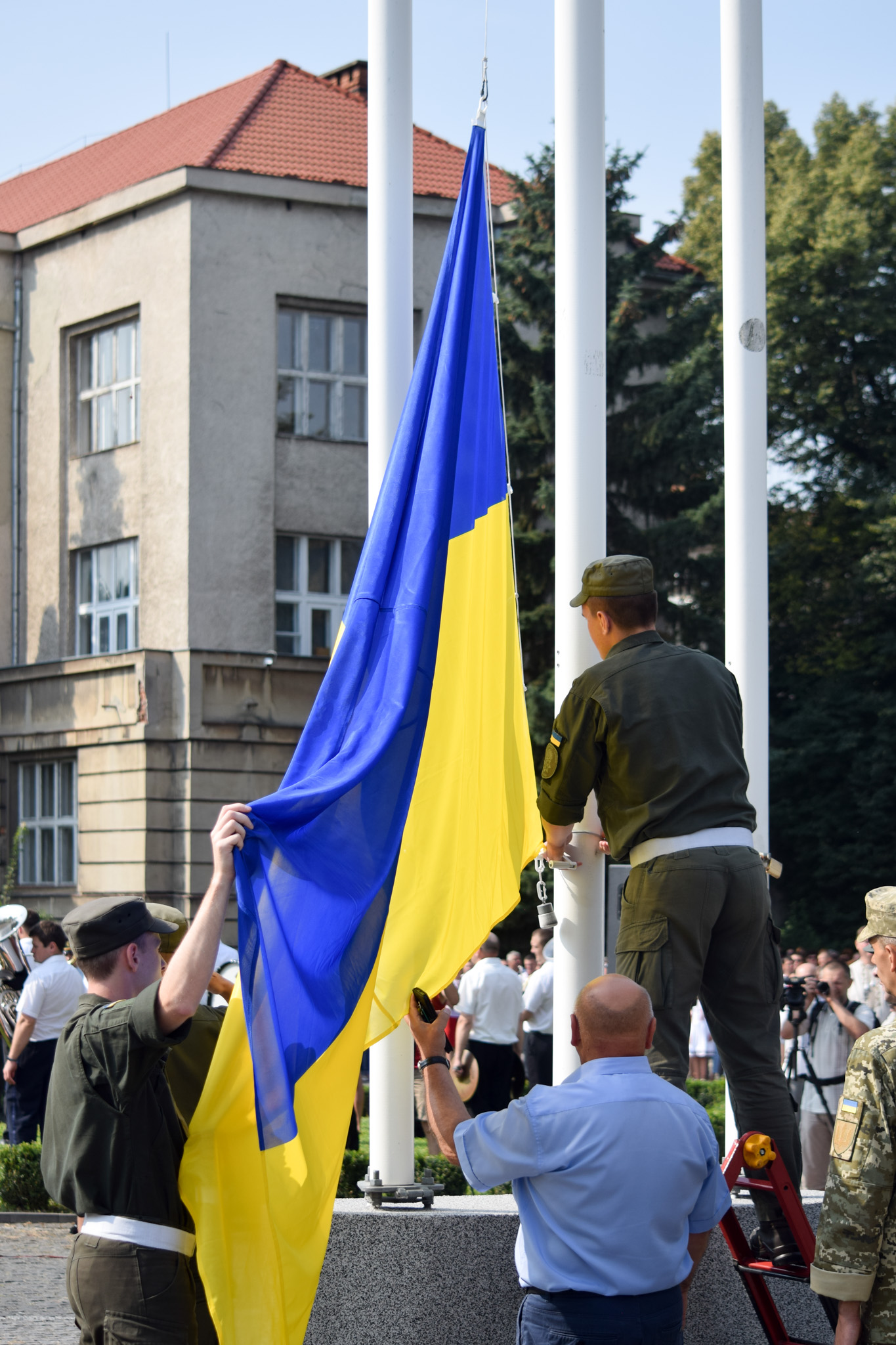 Україна святкує День Державного Прапора, що став втіленням національної єдності. Урочистості з цієї нагоди відбулися сьогодні і в Ужгороді. На площі Народній зібралося багато краян, із самого ранку тут несли почесну варту військові. Під Гімн підняли прапор України, керівники Закарпатської області та міста Ужгорода, представники правоохоронних органів, військові, священнослужителі, дипломати поклали квіти до пам’ятника Тарасу Шевченку, після чого на площі розгорнули 100-метровий український стяг й урочиста хода на чолі з мажоретками – ансамблем барабанщиць Ужгородського коледжу культури і мистецтв - вирушила на набережну Незалежності, де відбулося покладання квітів до пам’ятника президенту Карпатської України Августину Волошину.