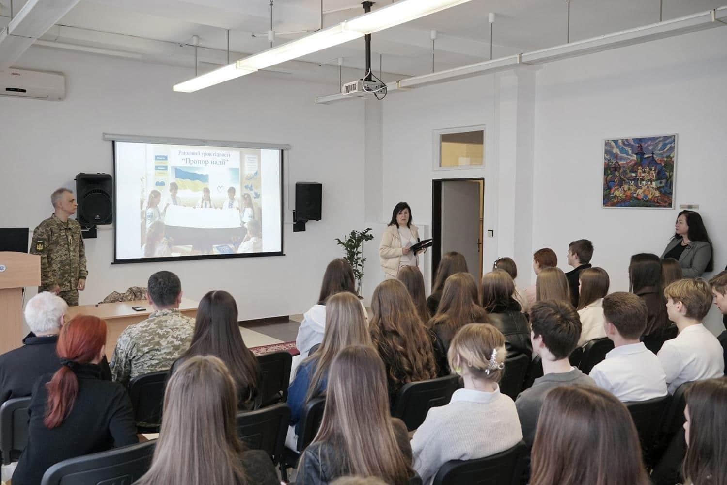 Після церемонії у ліцеї провели Урок гідності для учнів 5-(9)-А, 6(10)-А та 6(10)-С класів, під час якого говорили про мужність, патріотизм, силу духу та важливість підтримки родин захисників.