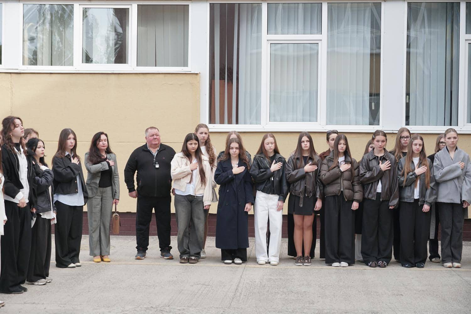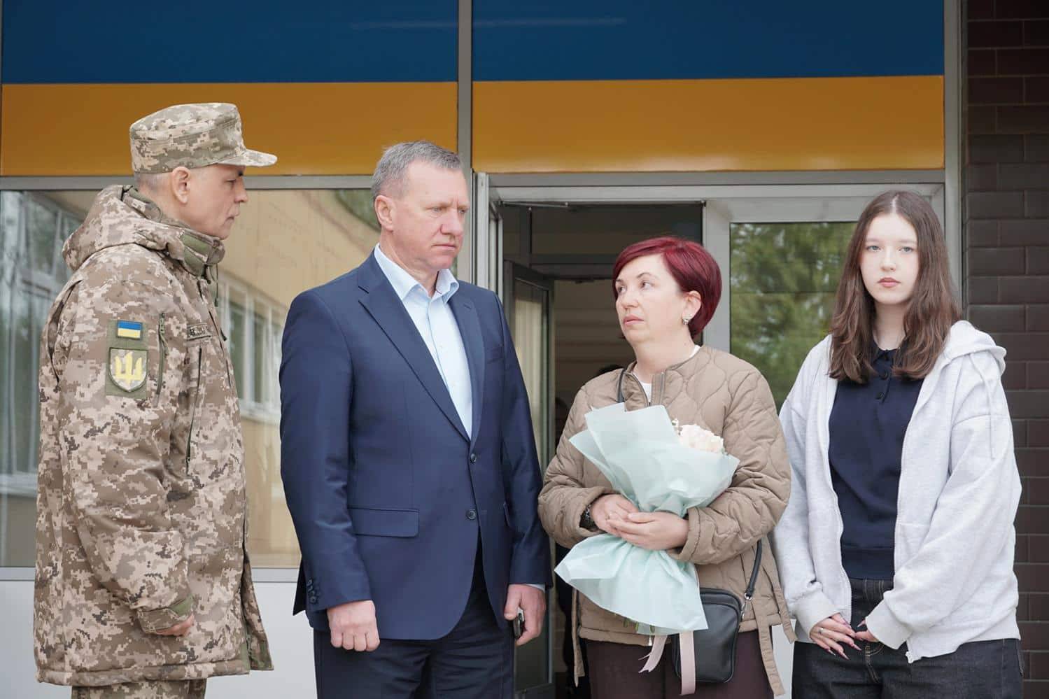 Під час виконання Державного Гімну України учениці ліцею Дарина Мараєва та Соломія Штундер, батьки яких стали на захист Батьківщини і нині вважаються зниклими безвісти, підняли Прапор Надії – як символ віри, любові та очікування повернення найдорожчих людей.