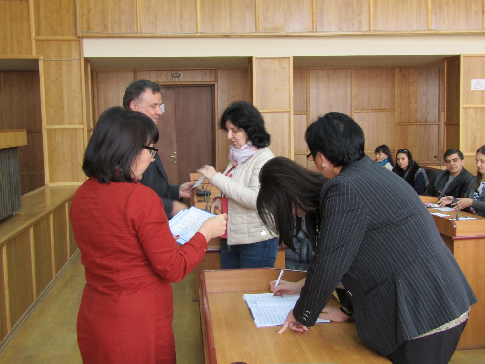 Привітали працівників із успішним завершенням навчання та вручили свідоцтва керуючий справами виконкому Ужгородської міської ради Олена Макара і керівник Центру Володимир Дупелич. Олена Михайлівна подякувала Центру за проведення занять, можливість навчатися без відлучення від основної роботи, а працівникам міськради побажала подальших успіхів, щоб нові знання знадобилися у щоденній роботі. «Навчання – обов’язковий процес, який супроводжує людину протягом усього життя. Сподіваюся, те, що ви дізналися на цих курсах, допомагатиме вам у професійному, кар’єрному зростанні», – відзначив Володимир Дупелич.
