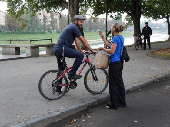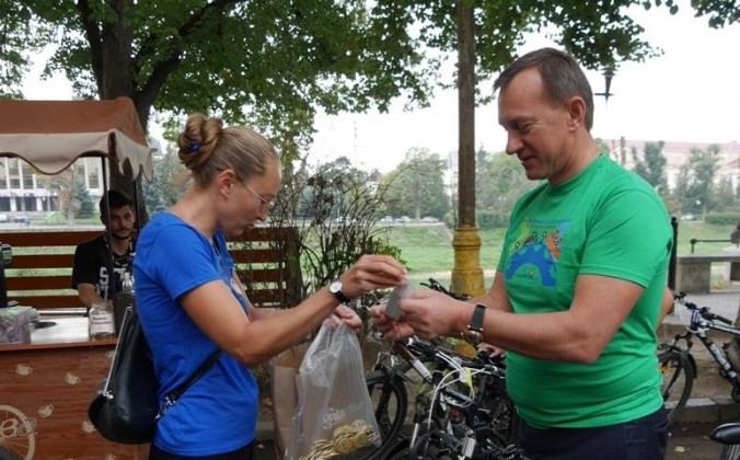 Кожен, хто сьогодні їхав на роботу велосипедом, отримав значки та наліпки від ГО “ФОРЗА”. Як і було обіцяно, на набережній Незалежності поруч із пам’ятником Августину Волошину всіх пригощали смачною кавою.