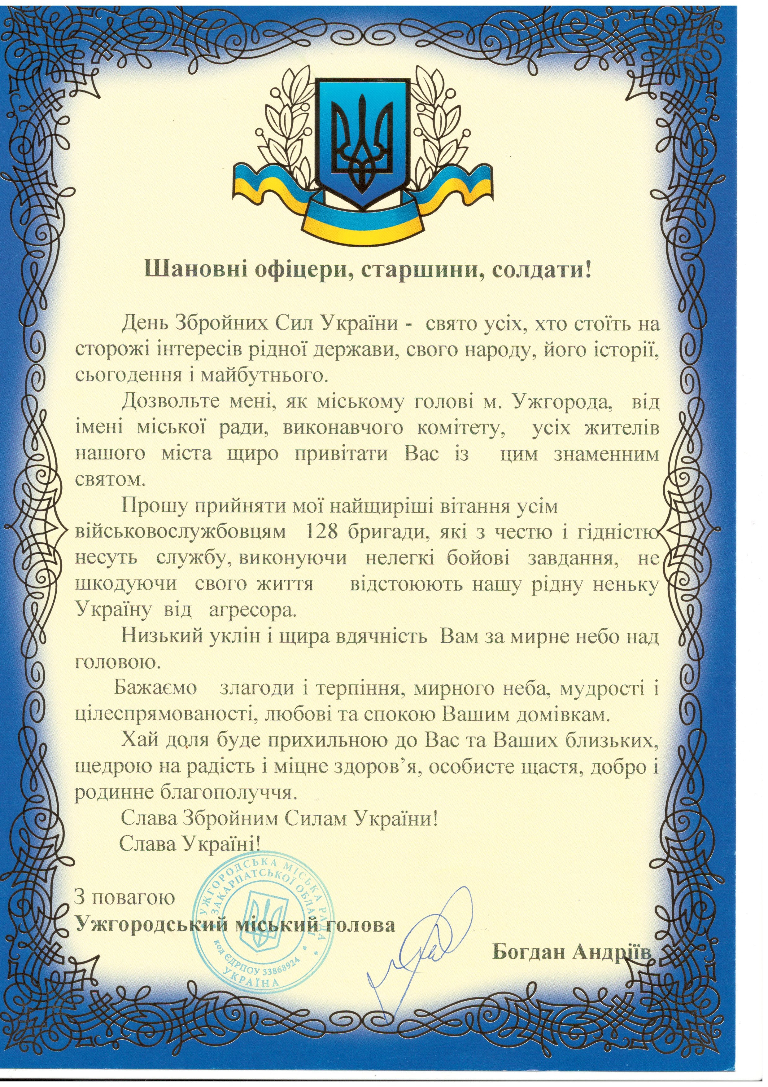Сьогодні в зону АТО, в місто Торецьк Донецької області, для бійців військової частини А-1778, що базується в Ужгороді і перебуває у складі 128-ї окремої гірсько-піхотної Закарпатської бригади, передали вантаж від Ужгородської міської ради.