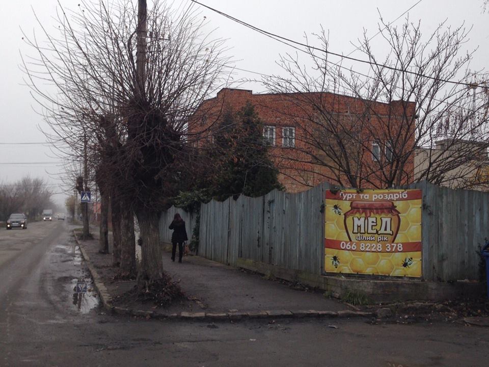 вул. Українська, на огорожі біля Укрсоцбанку, фірма «АРС» – розтяжка;