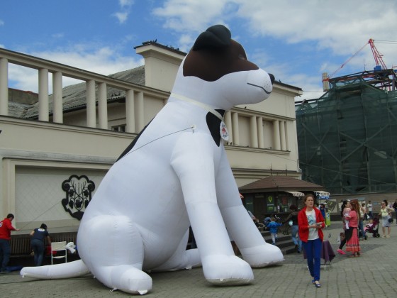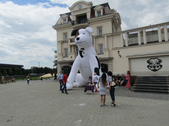 Представники ТОВ «Чотири лапи Україна» спільно з Ужгородською організацією захисту безпритульних тварин “Барбос” проводять сьогодні в Ужгороді просвітницьку акцію – на площі Театральній можна поспілкуватися з представниками обох організацій, отримати відповіді на запитання, а також сфотографуватися із 6- метровим песиком.