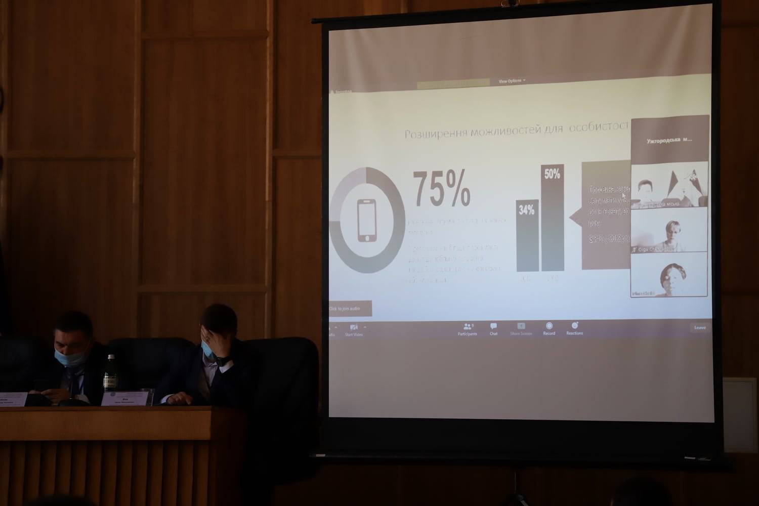 Привітав учасників, які зібралися в сесійному залі та долучилися онлайн, зокрема з Києва, Чернігова, міський голова Ужгорода Богдан Андріїв. Він наголосив на важливості посилення ролі місцевого самоврядування, реформі децентралізації та всіх пов'язаних із нею процесів, важливості конструктивного діалогу між центральною та місцевими владами, побажав учасникам конференції успішної роботи.