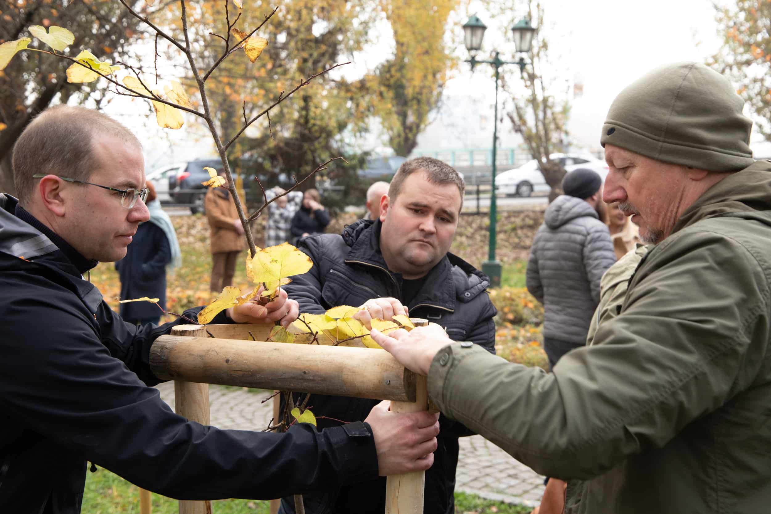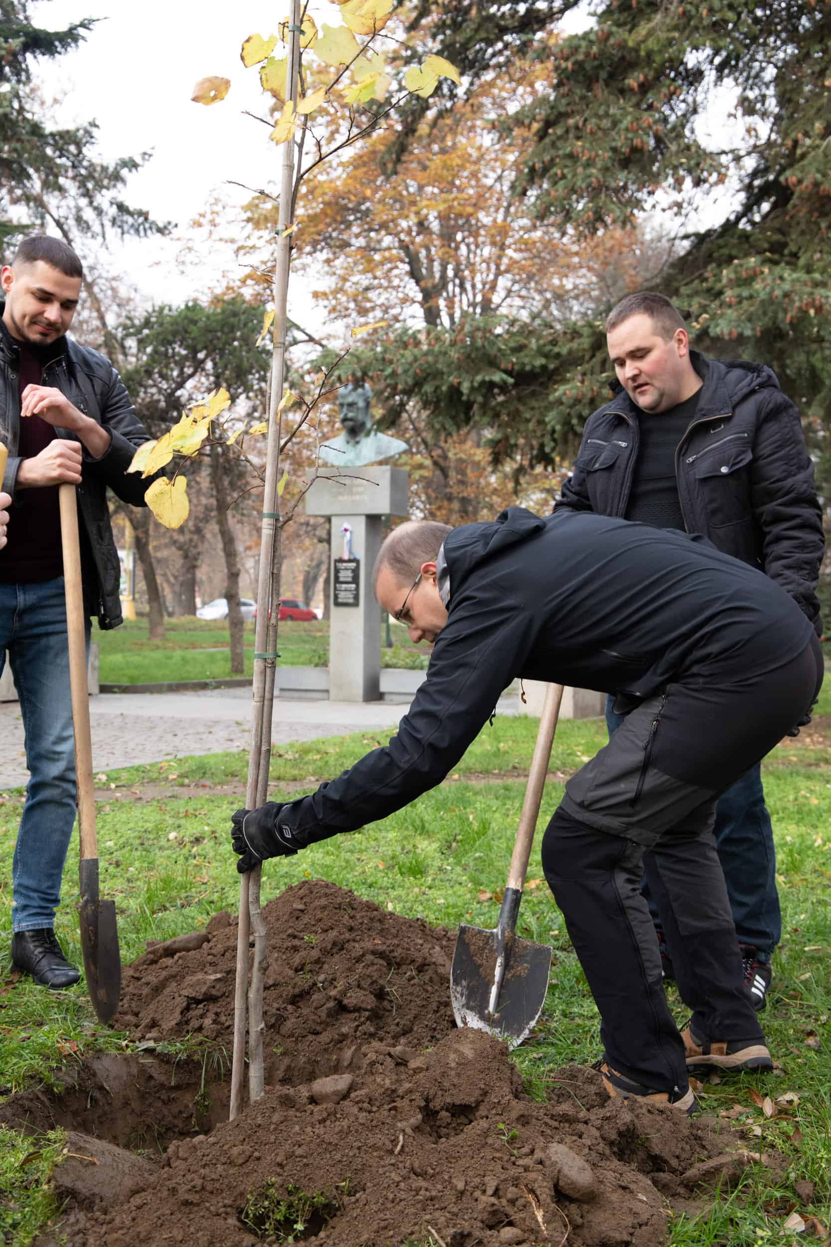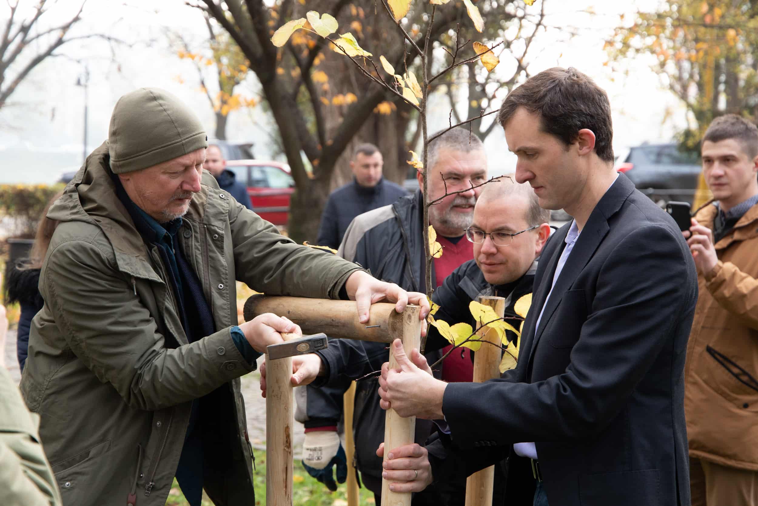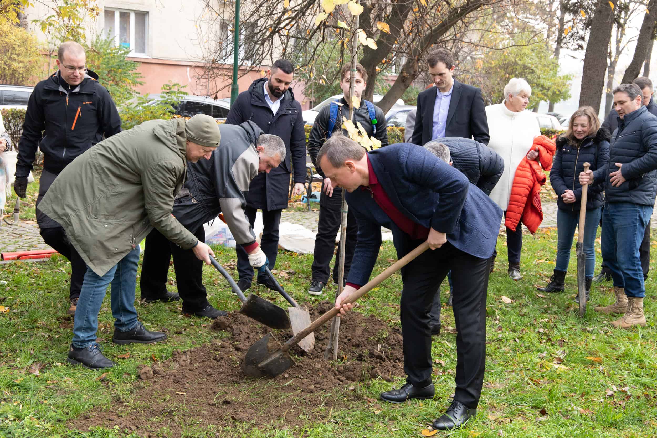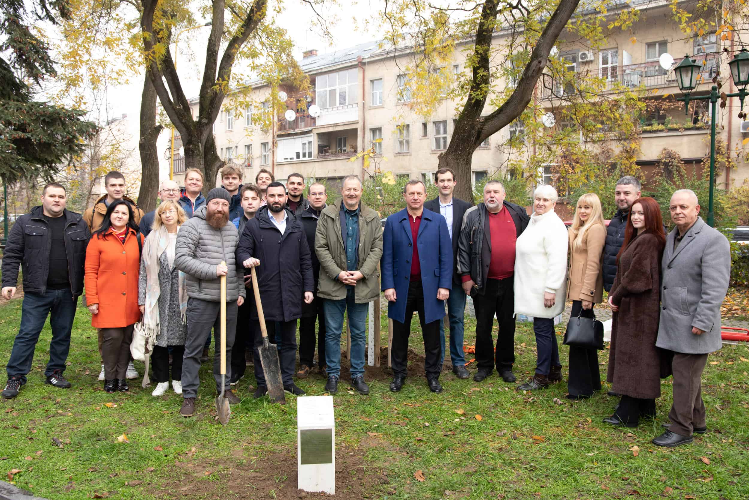 У символічній дружній акції взяли участь, зокрема, делегація із чеського міста Брно, яка привезла дерево, – директор фонду «Партнерство» Петер Казда та менеджери цього фонду Мирослав Кундрата і Сюзанна Бенешов, генеральний директор інвестиційної компанії RSJ Investments Лібор Вінклер, керуючий активами цієї компанії Якуб Кучера та менеджер Лукаш Резек, чеський підприємець Міхал Грабі та Ужгородський міський голова Богдан Андріїв, секретар міської ради Арсен Мелкумян, заступник міського голови Василь Пинзеник, головний архітектор міста Олег Боршовський, начальниця управління міжнародного співробітництва та інновацій міської ради Вікторія Тарахонич і її заступниця Вікторія Білас, засновниця ГО «Екосфера» Оксана Станкевич-Волосянчук, керівник клубу Т.Г.Масарика в Ужгороді Іван Латко, кандидат біологічних наук, викладачка біологічного факультету УжНУ Інна Бесеганич, інші поважні гості.