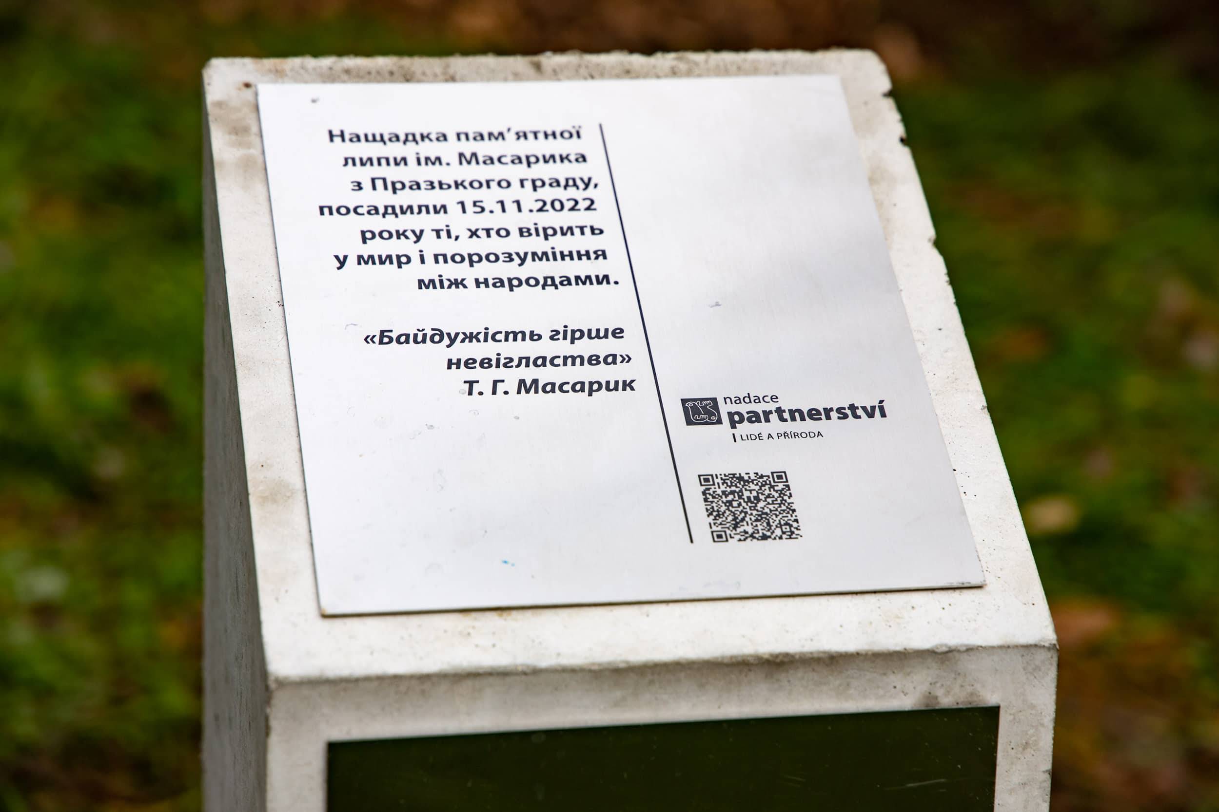 Висадження липи символізує дружні зв’язки між країнами – Україною та Чехією, зазначив Петер Казда. Як відомо, долі двох держав протягом століть були переплетені низкою відомих подій, впливом митців, політиків, науковців тощо.