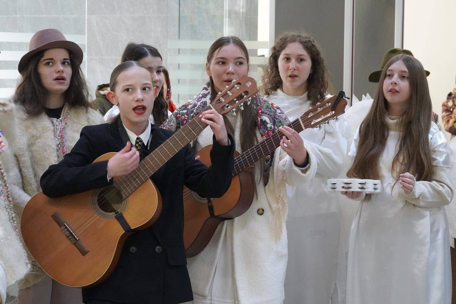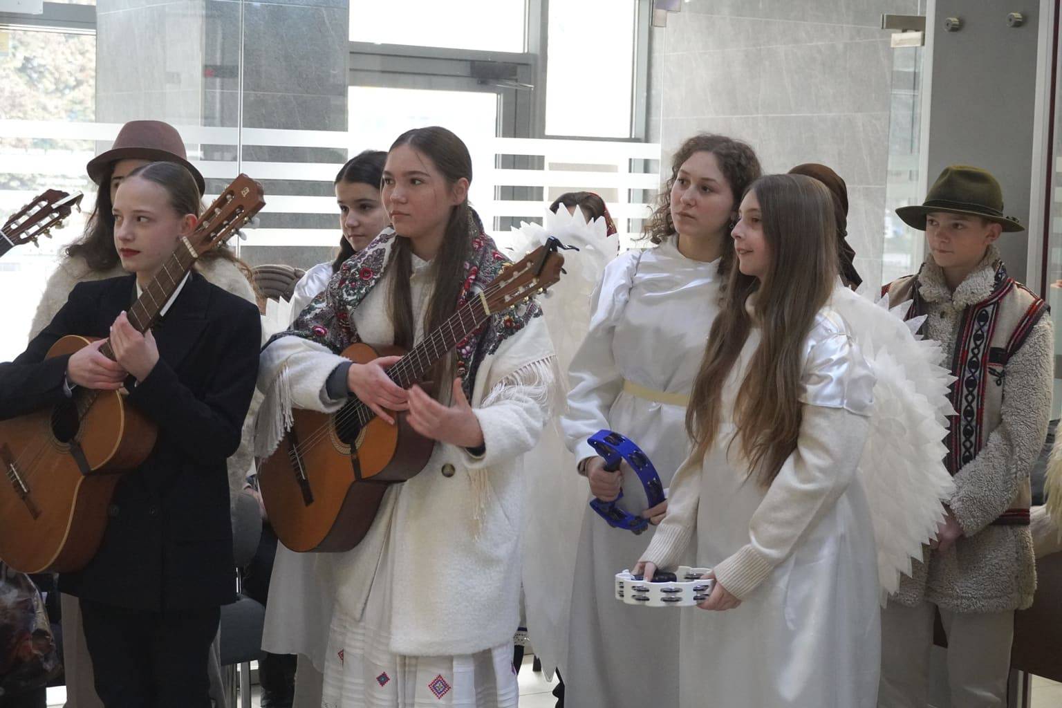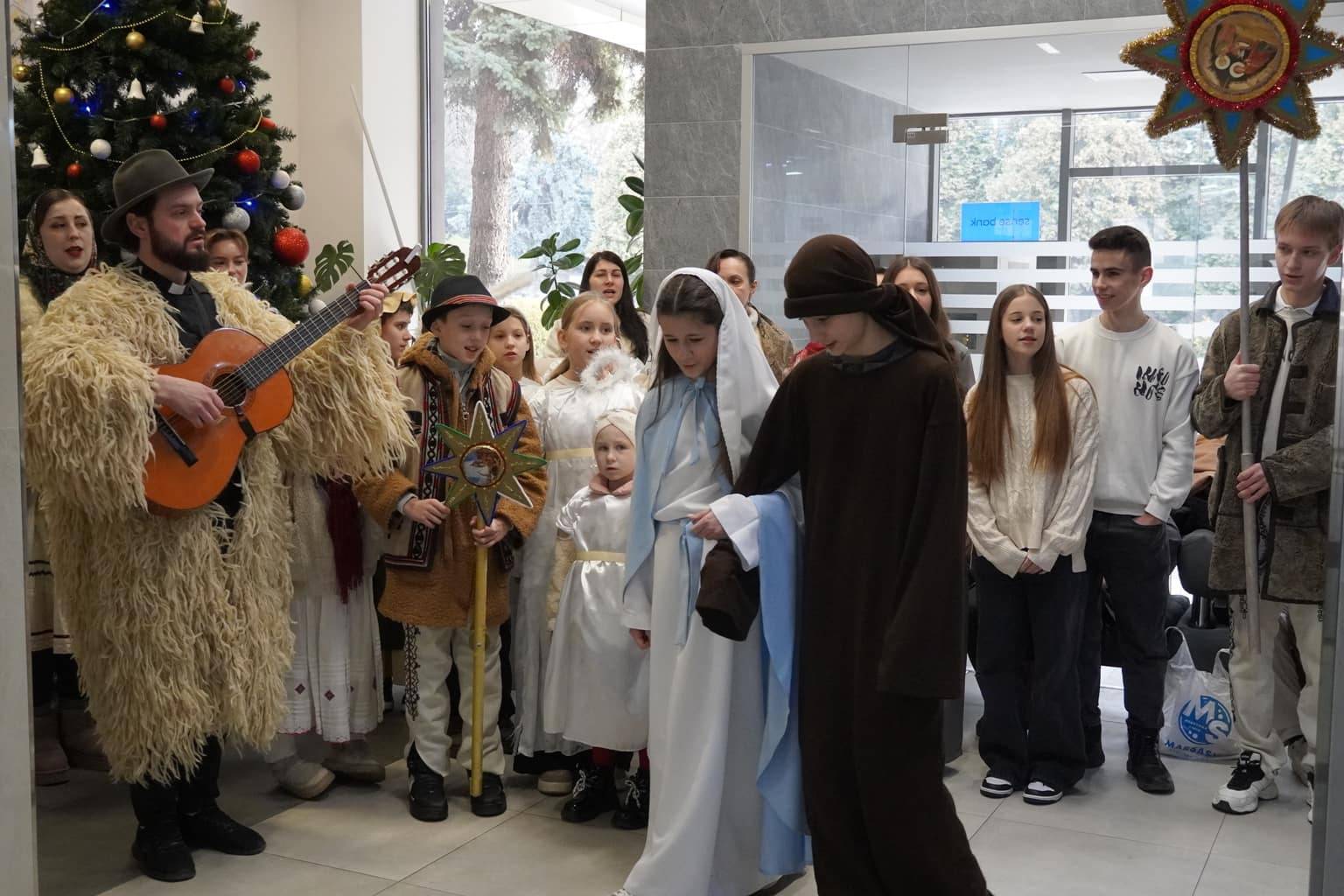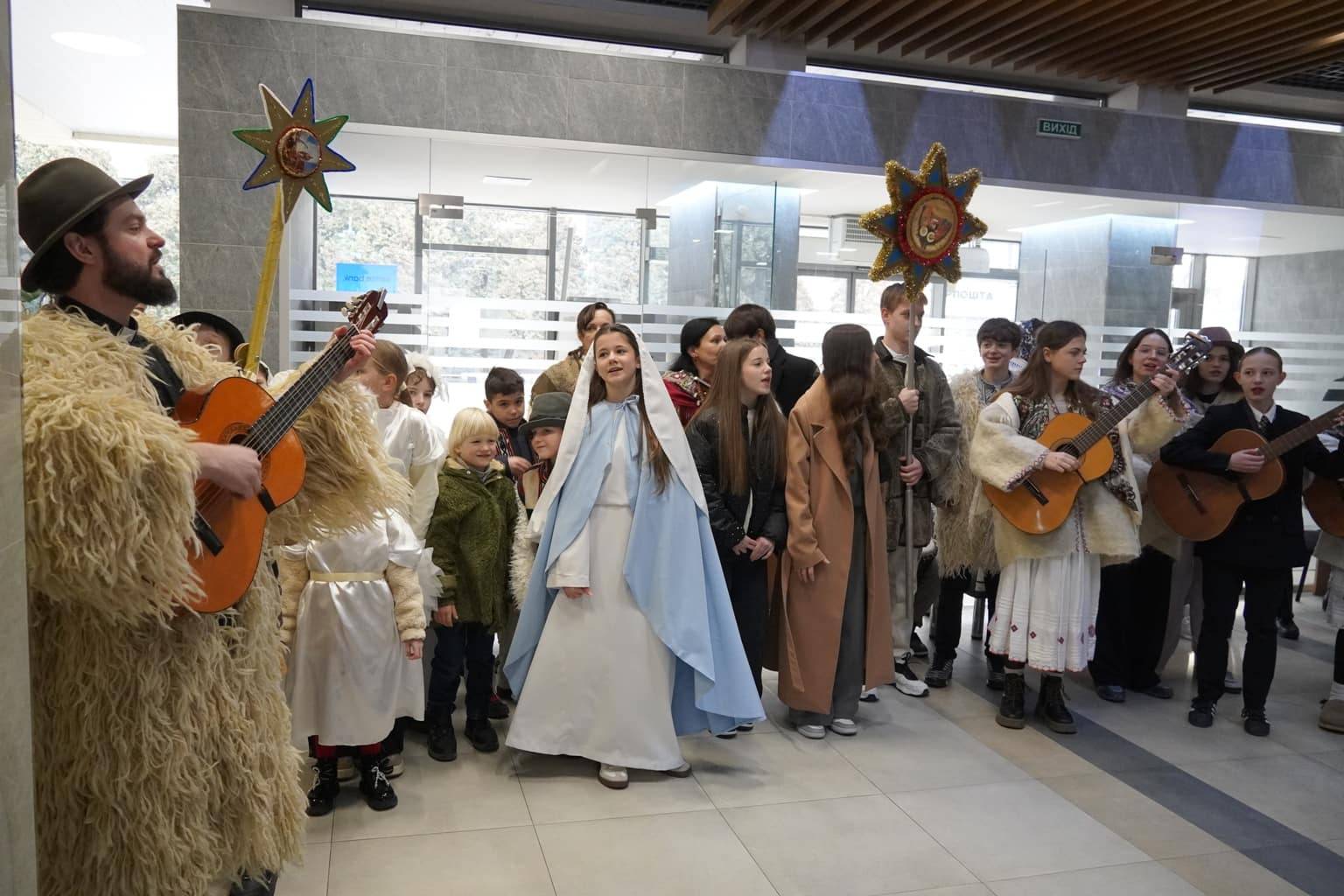 Колядники прославляли новонародженого Ісуса у Вифлеємі, співали традиційні пісні, даруючи атмосферу свята всім присутнім. Привітали міського голову Богдан Андріїв , працівників установи та відвідувачів зі святами – щиро, по-дитячому, світло.