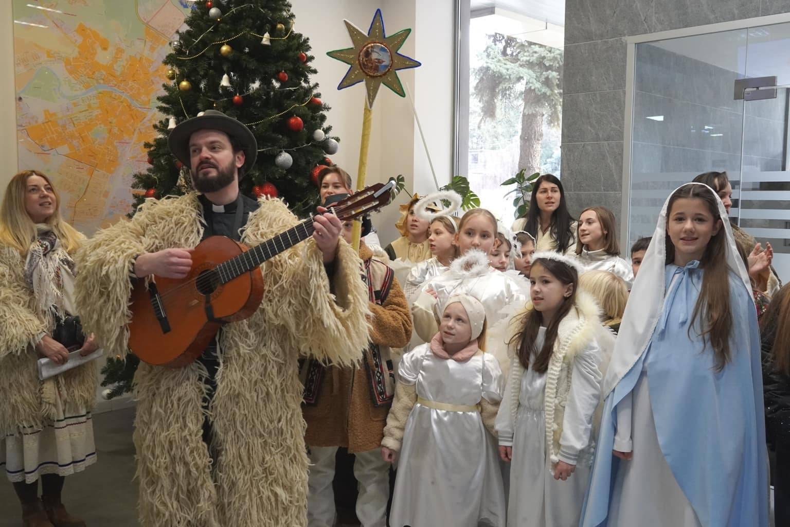 Щирі колядки та радісне віншування знову лунали сьогодні в Ужгородській міській раді – завітали діти та молодь з Хрестовоздвиженського кафедрального собору Мукачівської греко-католицької єпархії.