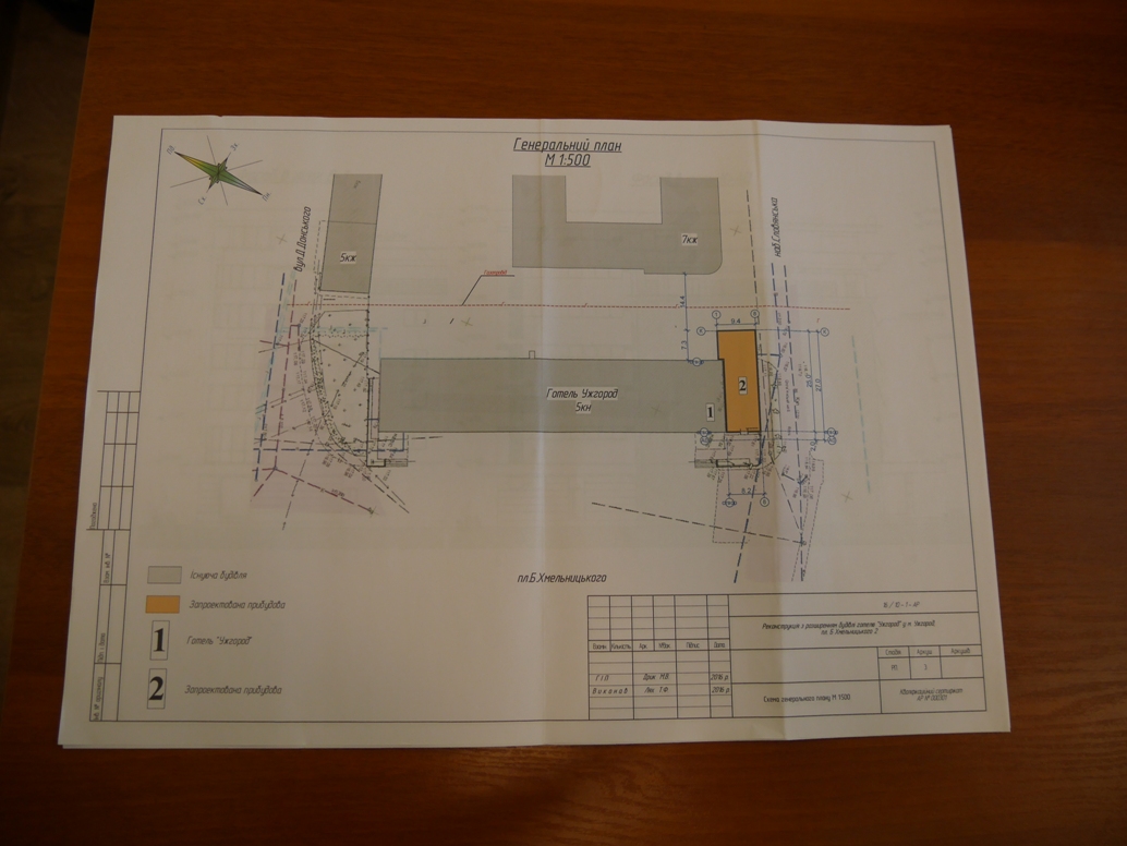 Також, як інформує відділ державного архітектурно-будівельного контролю Ужгородської міської ради, товариством подано декларацію на початок будівельних робіт – реконструкцію з розширенням будівлі готелю «Ужгород» від 23.11.2016 року. Проект пройшов експертизу, документ датовано 15.11.2016 року. За межі червоної лінії забудови Слов’янської набережної будівництво не виходить.