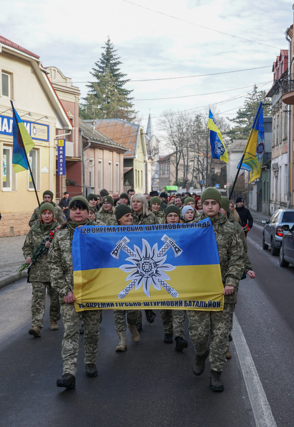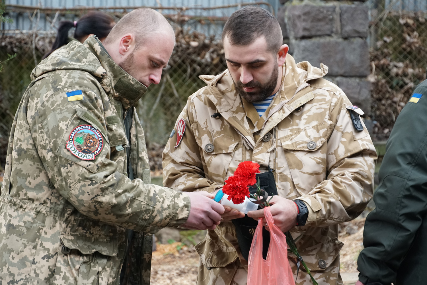 Із військової частини колоною пройшли містом до Пагорба Слави, де відбувся мітинг-реквієм, у якому взяли участь заступник голови Закарпатської ОДА Ігор Шинкарюк, перший заступник голови Закарпатської облради Йосип Борто, міський голова Богдан Андріїв, представники обласних управлінь та служб, громадськість, військовослужбовці тощо.