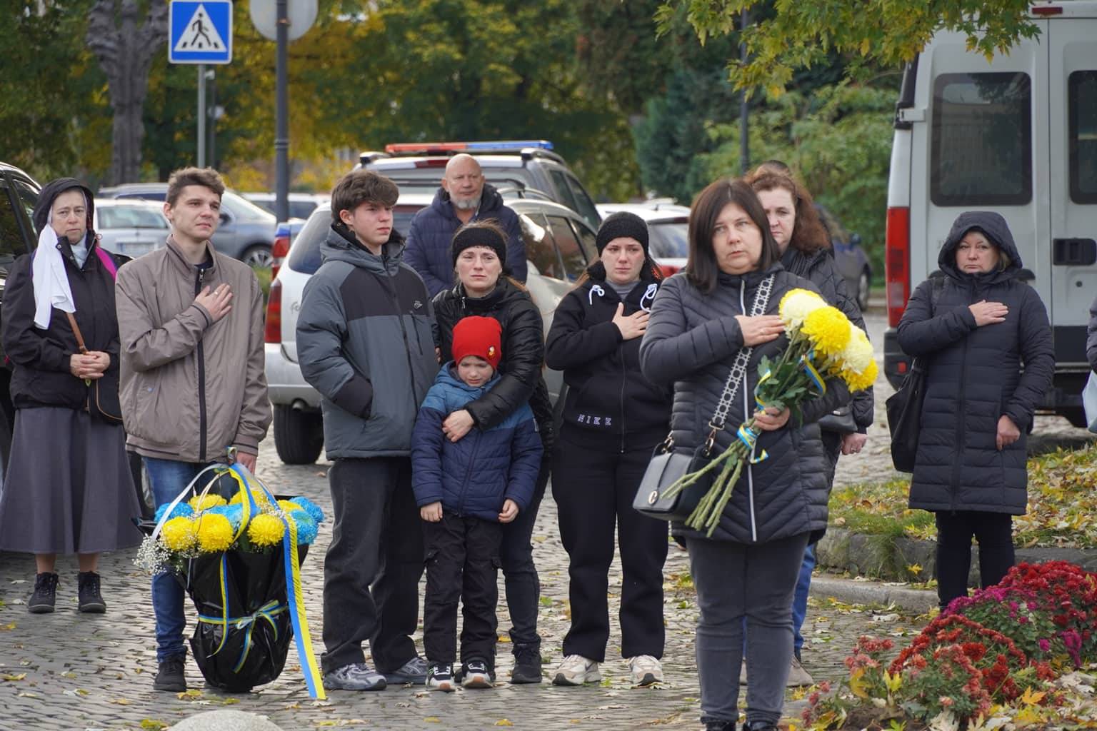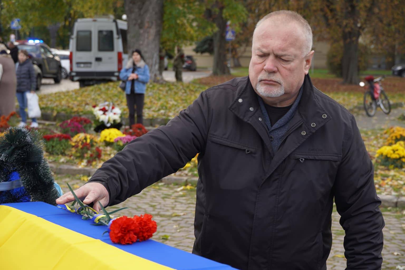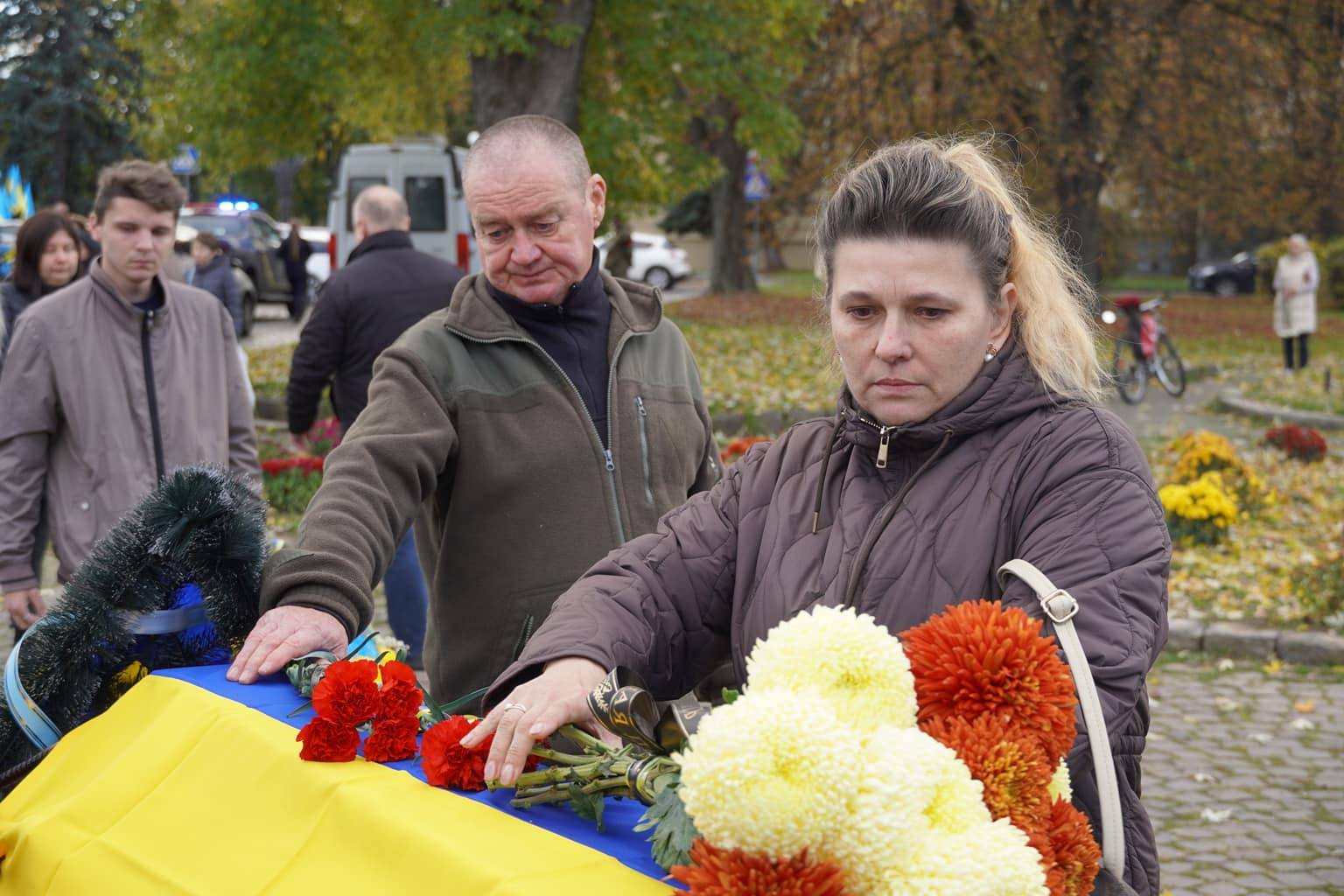 Чин похорону відбувся на площі Народній. Провести воїна в останню путь прийшли рідні, секретар міської ради Ігор Чорній, військові, містяни.
