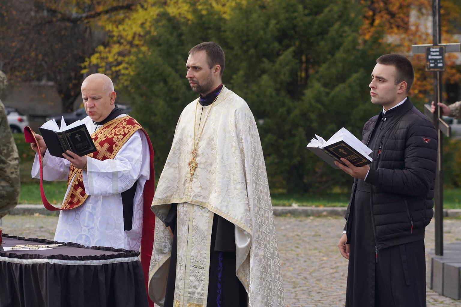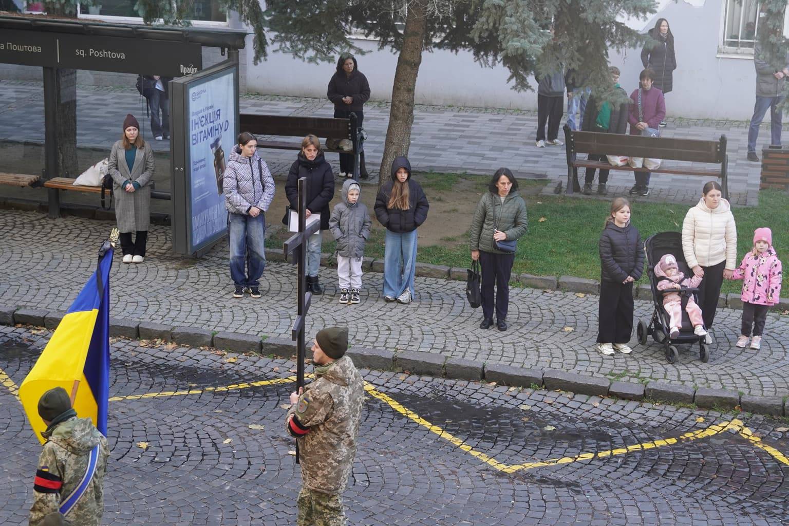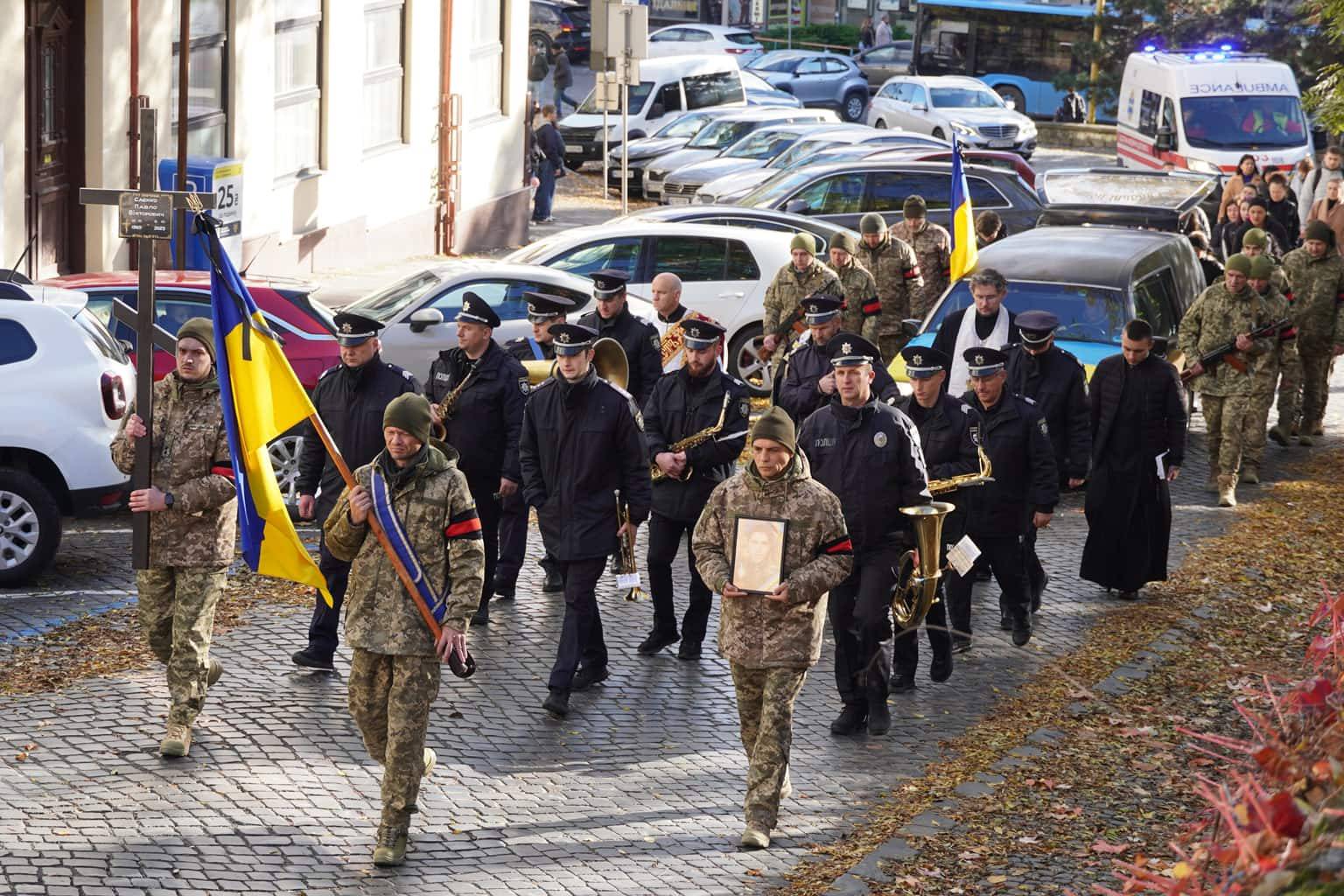 Чин похорону відбувся на площі Народній. Провести воїна в останню путь прийшли рідні, секретар міської ради Ігор Чорній, військові, містяни.