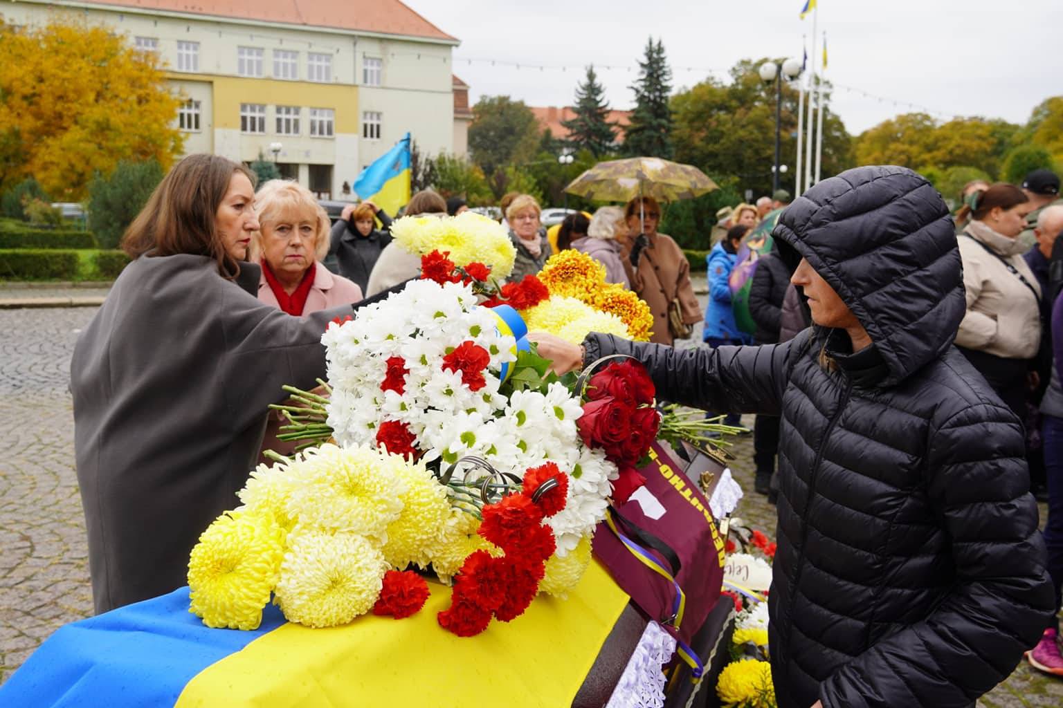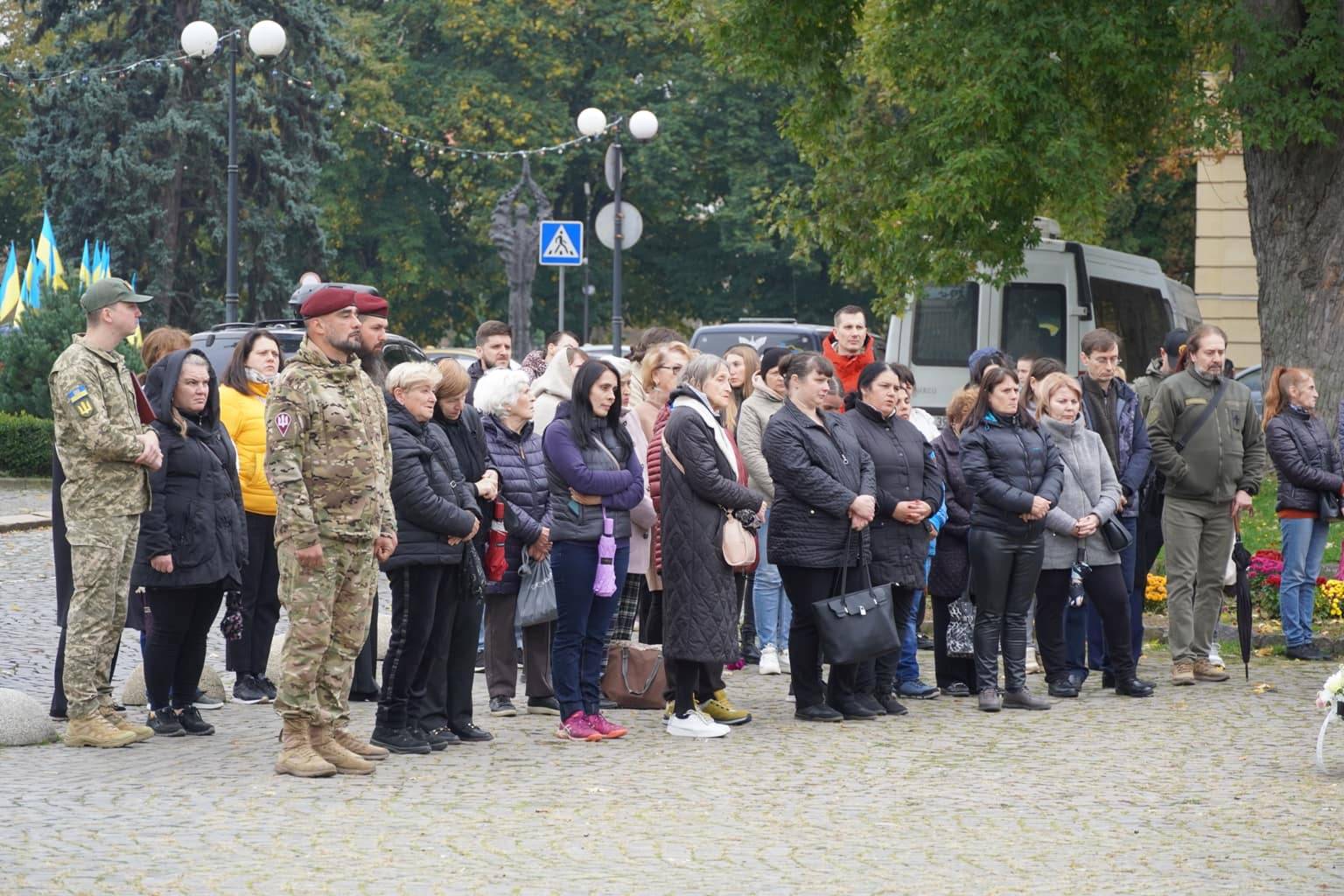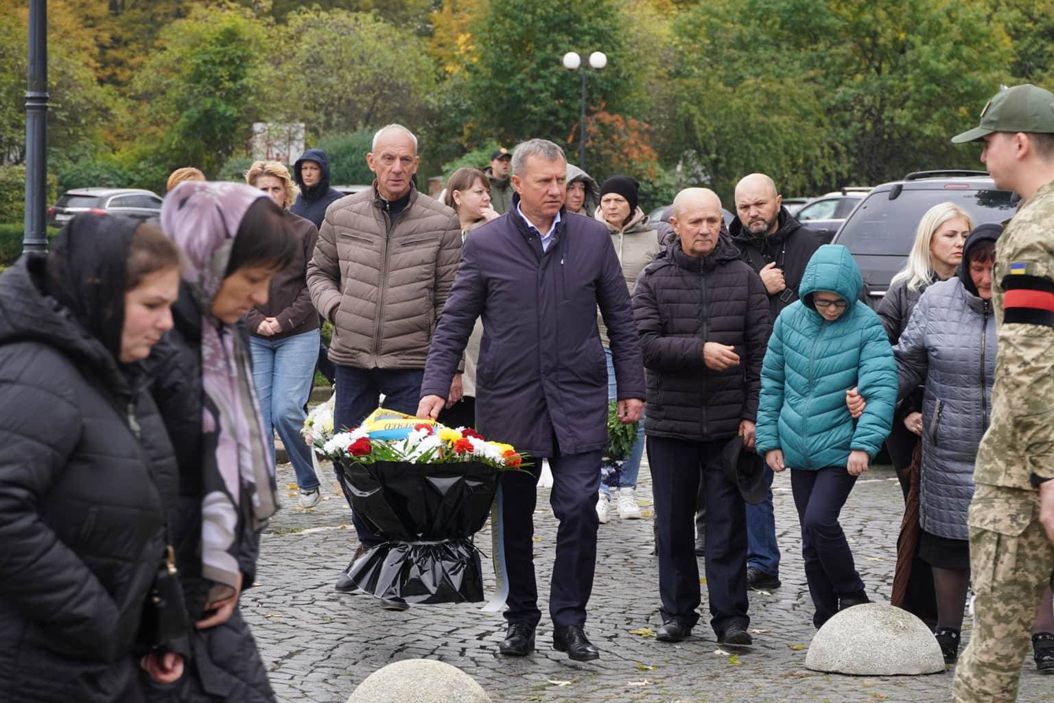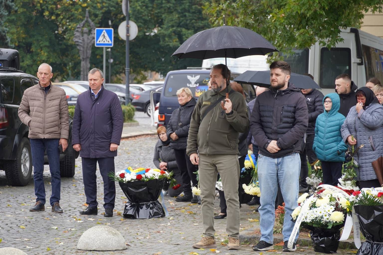Прощання з воїном відбулося на площі Народній. Провести Героя в останню дорогу прийшли рідні, друзі, бойові побратими, міський голова Ужгорода Богдан Андріїв, військовослужбовці та містяни.
