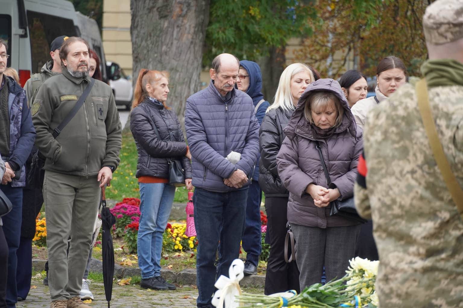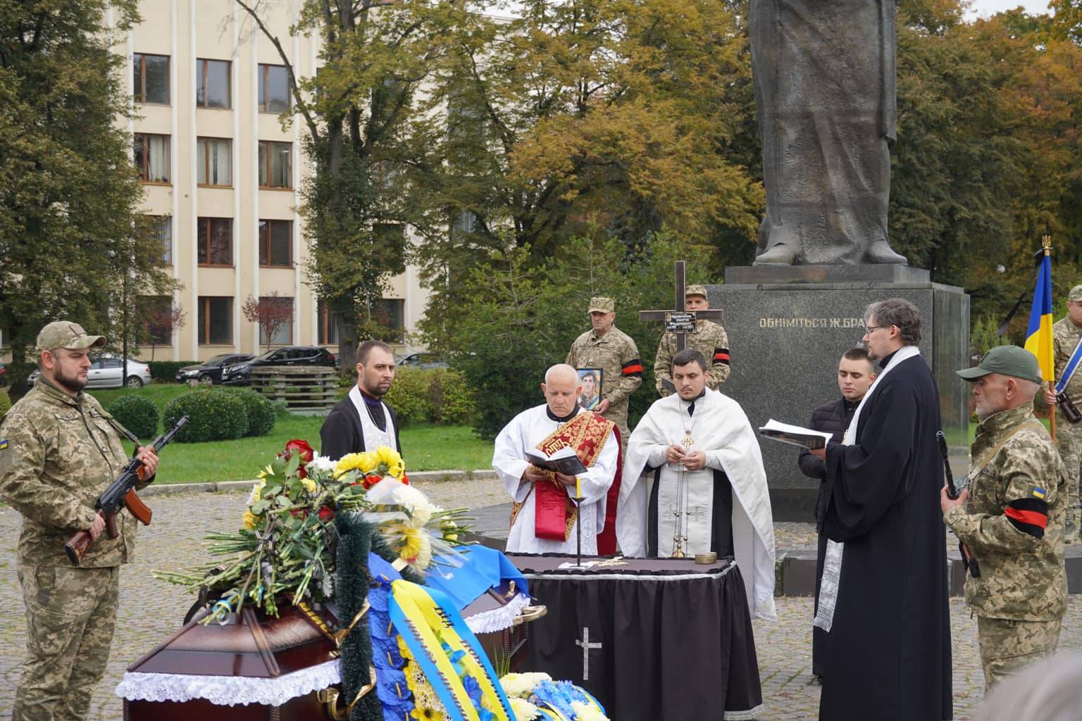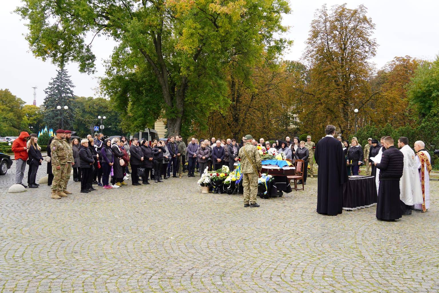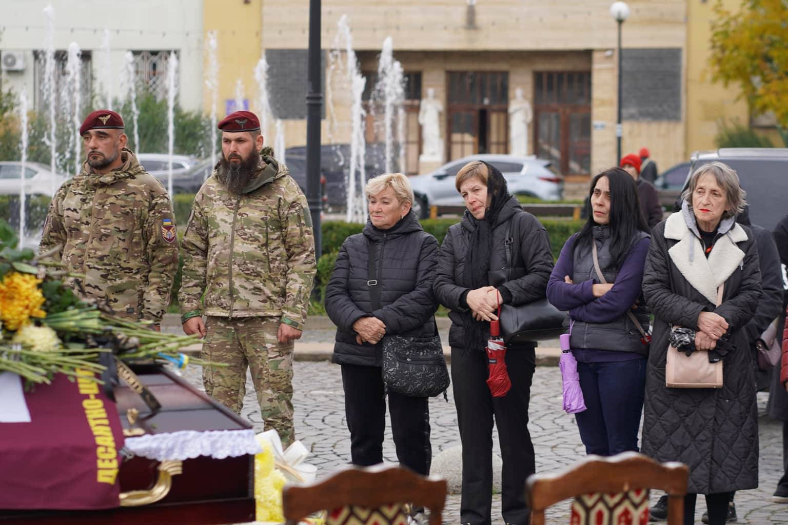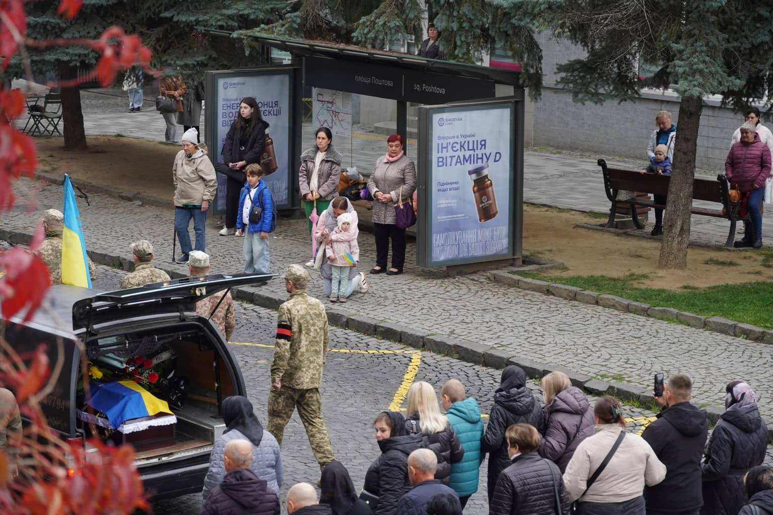 Прощання з воїном відбулося на площі Народній. Провести Героя в останню дорогу прийшли рідні, друзі, бойові побратими, міський голова Ужгорода Богдан Андріїв, військовослужбовці та містяни.