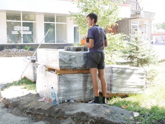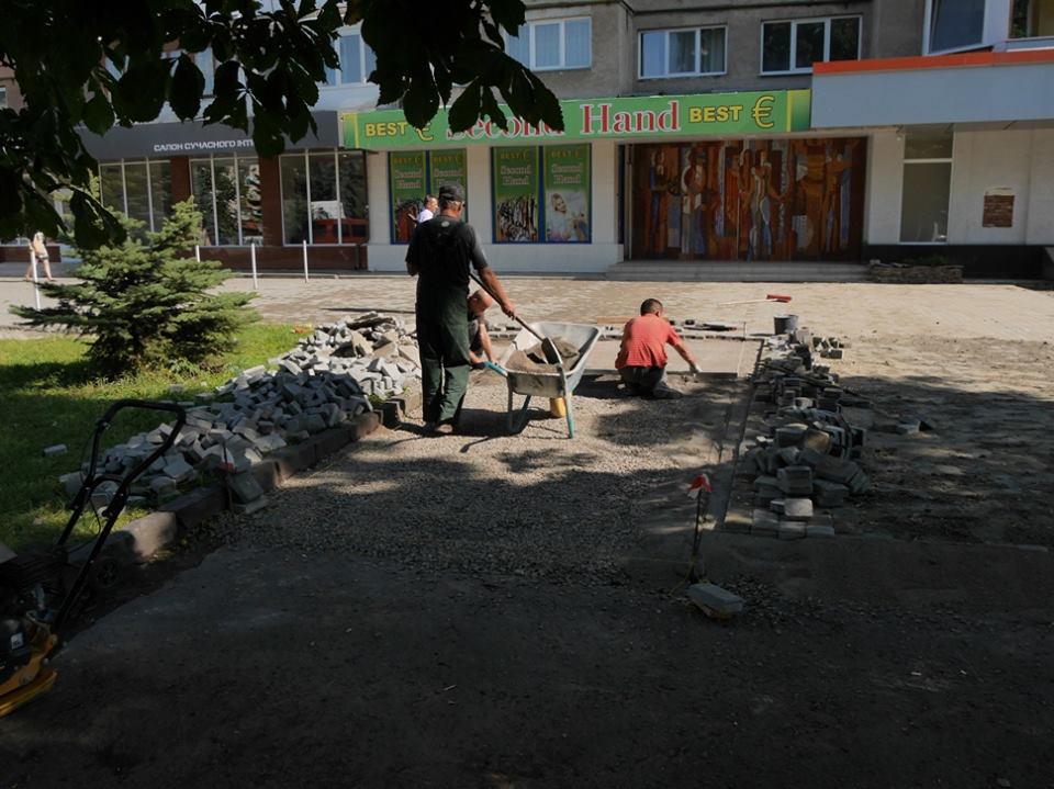 Тротуар на перехресті вулиці Л.Толстого та пр. Свободи в Ужгороді вздовж фасаду багатоповерхівки викладають ФЕМ-плиткою. Ужгородцям добре відомо, наскільки знищений тут, біля колишніх авіакас, магазину “Електрон” уже багато років був асфальт.