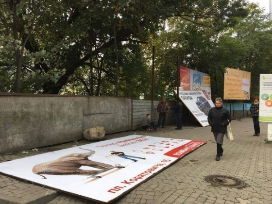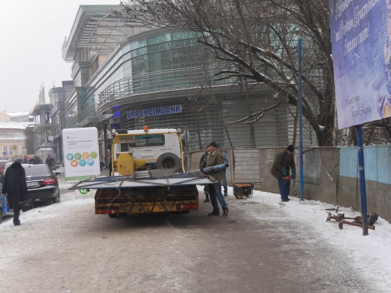 «Хроніка», як прибирали білборди навпроти Альпінарію – на фото.