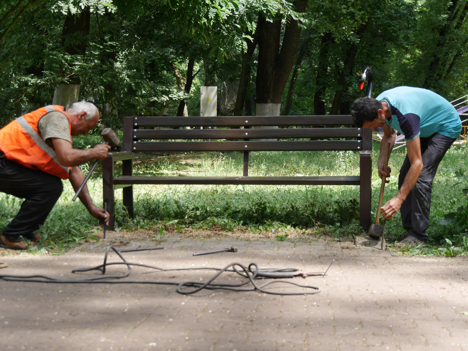 Нові лавки сьогодні встановлюють вздовж доріжок у Боздоському парку в Ужгороді.