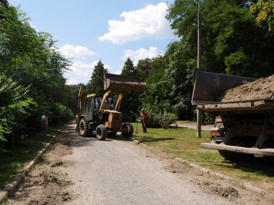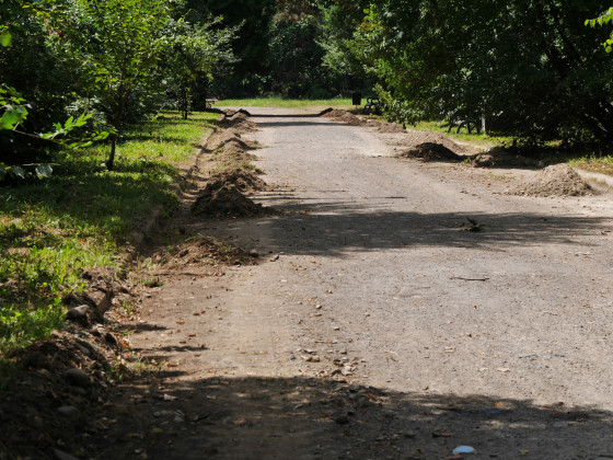 У Боздоському парку в Ужгороді продовжують упорядковувати доріжки і поставили нові лавиці