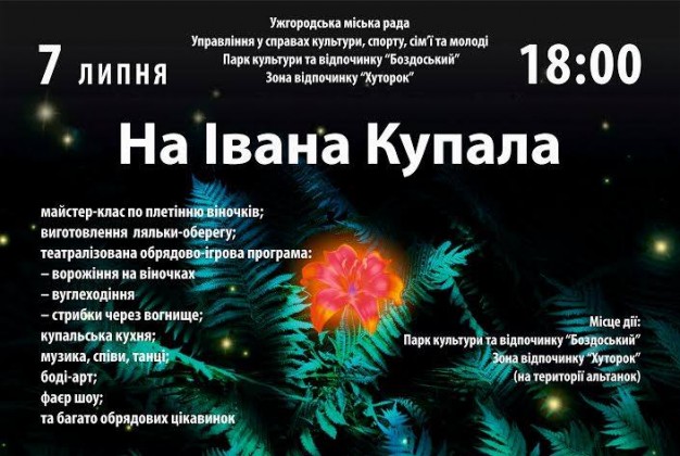 У четвер, 7 липня, – святкування Івана Купала у Боздоському парку
