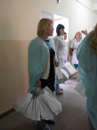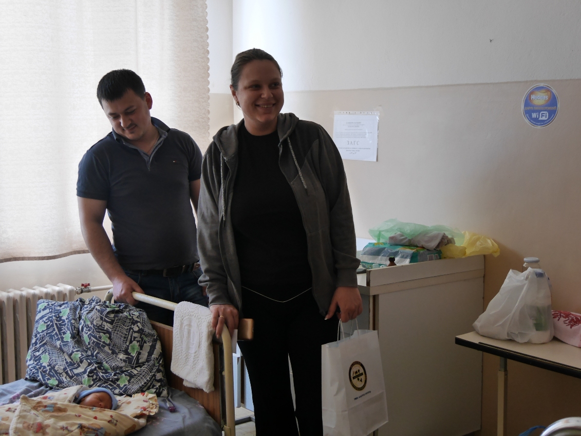 За порадами медиків, підготували невеличкі подарунки із найнеобхіднішого для кожної мами – памперси, пелюшки, гігієнічні вологі серветки, дитячий крем і чай.