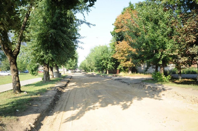 На вулиці Перемоги, яку капітально ремонтують, зараз проводять підготовчі роботи до встановлення бордюрів, працівники підрядної організації також облаштовують вуличну зливову каналізацію.