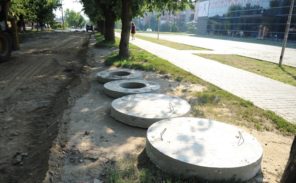 У рамках капітального ремонту на вулиці Перемоги в Ужгороді проводять підготовчі роботи до встановлення бордюрів, облаштовують вуличну зливову каналізацію