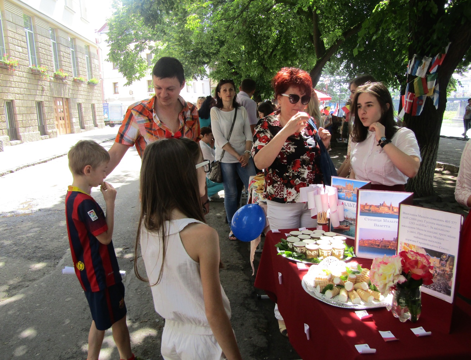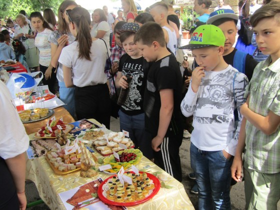 Діти представили національні страви таких європейських країн, як Угорщина, Бельгія, Румунія, Німеччина, Кіпр, Нідерланди та інших і запрошували усіх бажаючих скуштувати їх. Крім їжі презентували також символіку, плакати, стенди з фото та цікавинки, які характерні для кожної з країн.