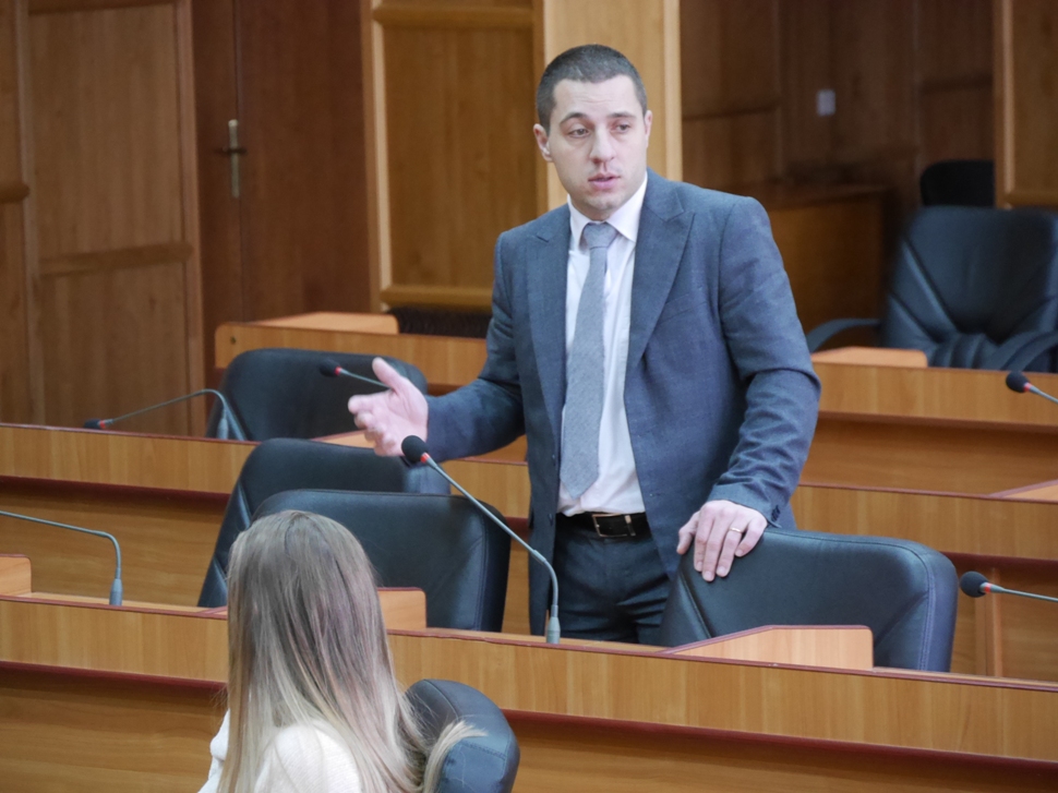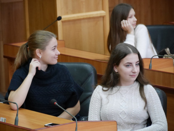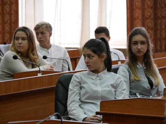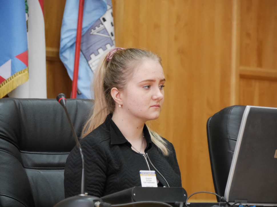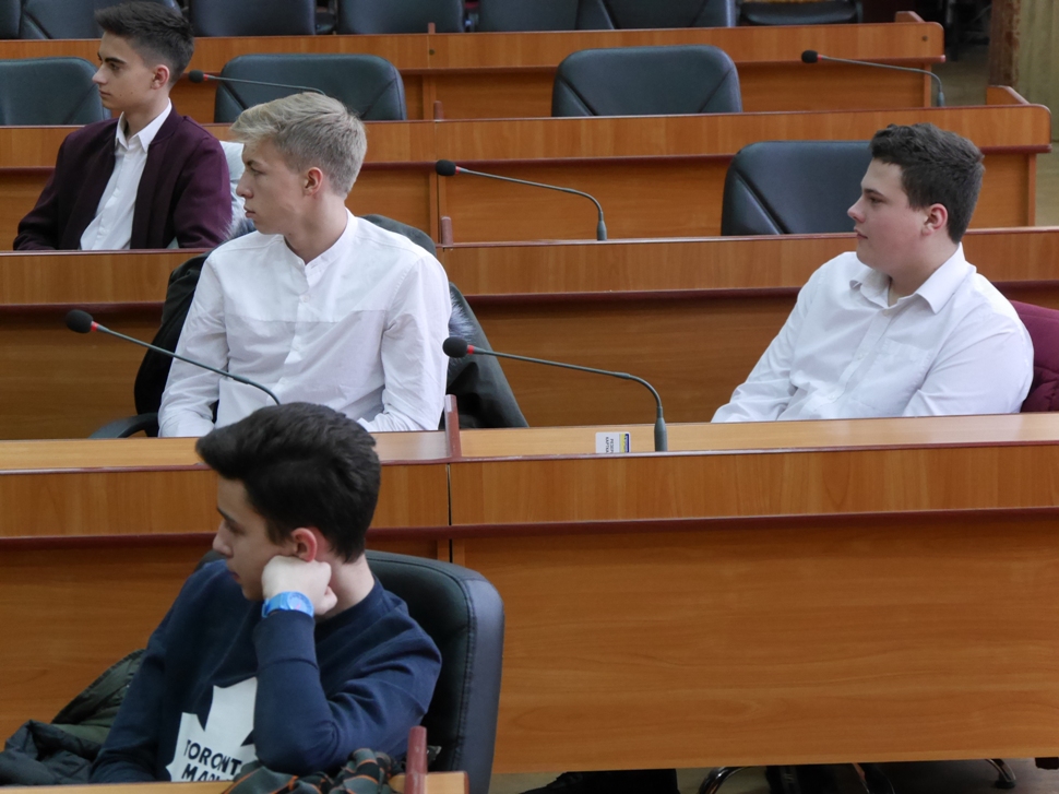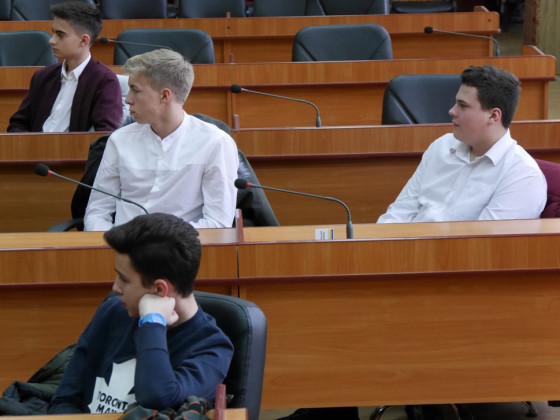 Школярів провели в сесійну залу, розсадили на місця, де працюють депутати. Заступник міського голови Василь Гомонай, який, до речі, також випускник цієї гімназії і є депутатом міської ради кількох скликань, очолював «бюджетну» комісію, розповів про роботу міської ради, ремонти вулиць, медичних закладів, садочків і шкіл, які вже зроблено і які планують з початку наступного року. Василь Васильович навів приклади, які питання вирішуються на законодавчому рівні всієї держави, а які – органами місцевого самоврядування, як розподіляються кошти, працюють прийняті міськими депутатами програми.
