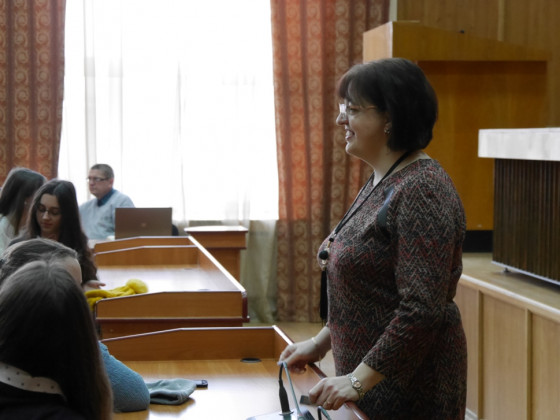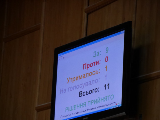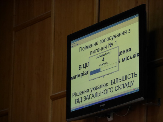 Начальник відділу по роботі з депутатами і постійними комісіями Ужгородської міської ради Олеся Шевчук розповіла про систему голосування депутатів міськради і гімназисти її випробували – перебіг голосування і його результати відображалися на електронному табло.