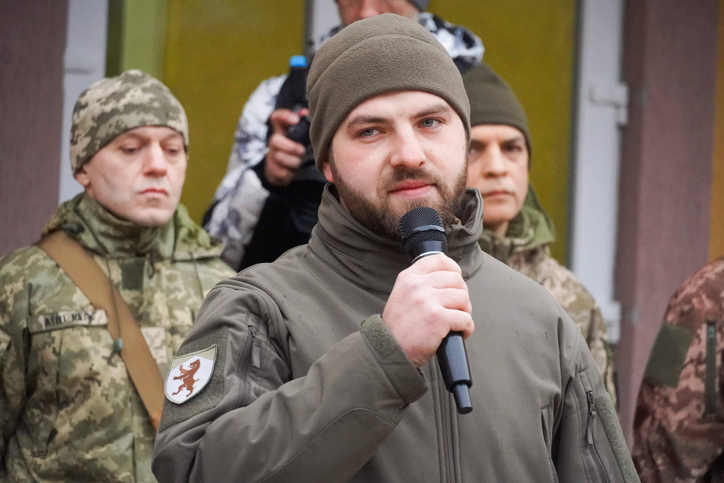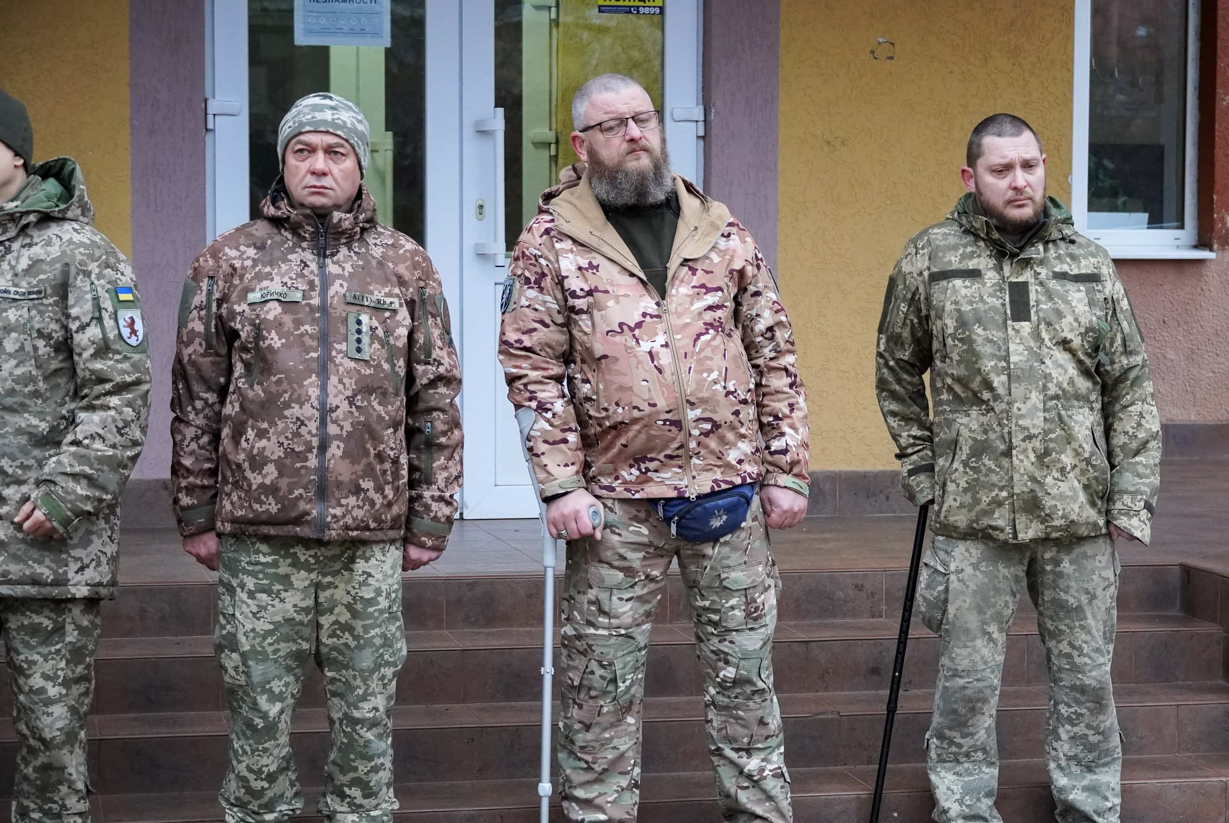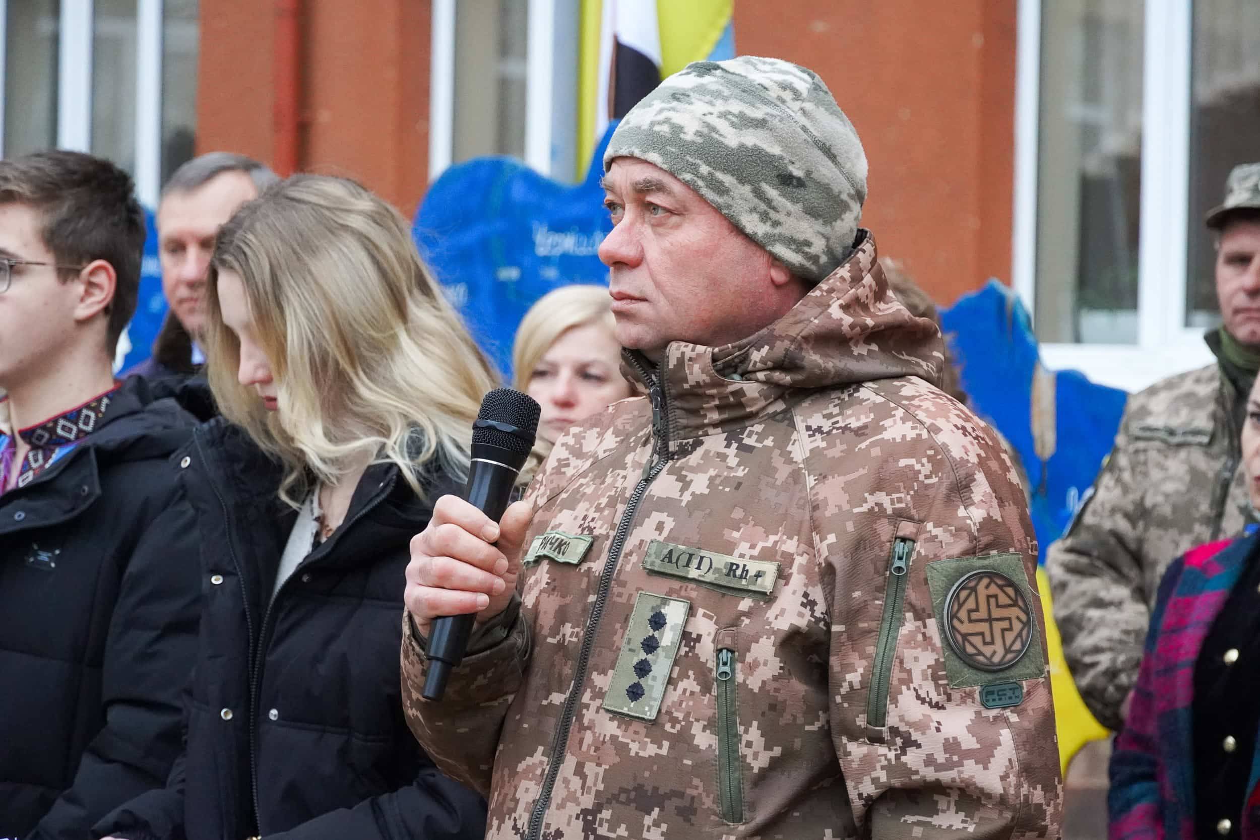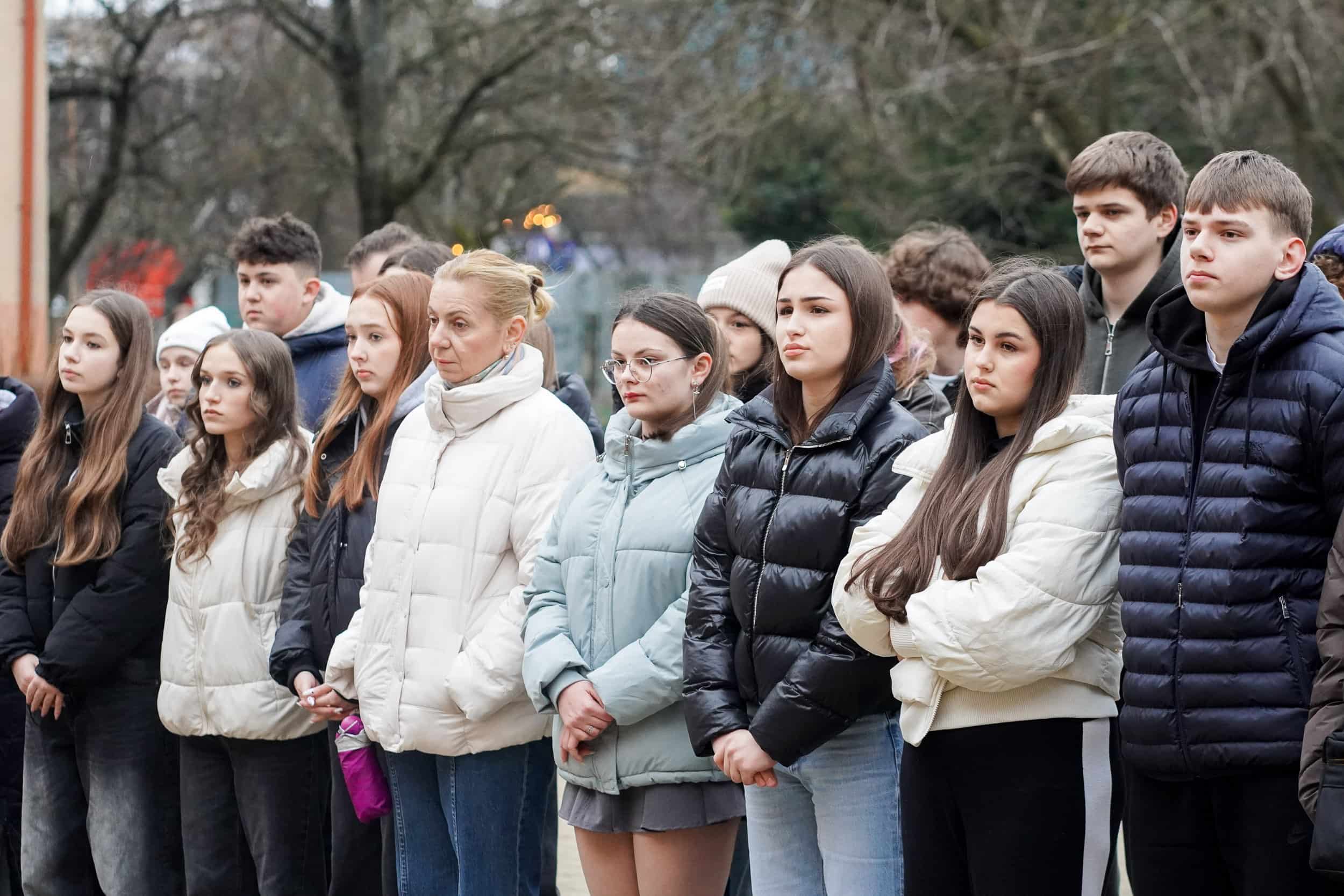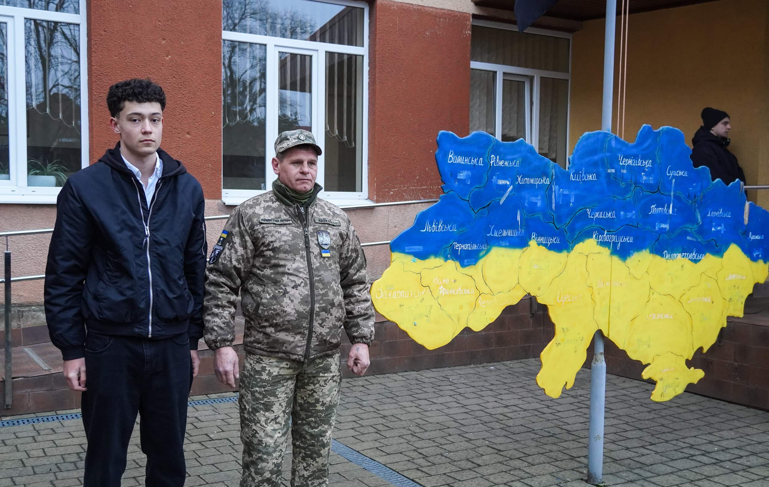 Символічним жестом стало підняття стяга сином військовослужбовця, учнем 11-Б класу Володимиром Обрезковим та ветераном російсько-української війни Михайлом Шум’яцьким.