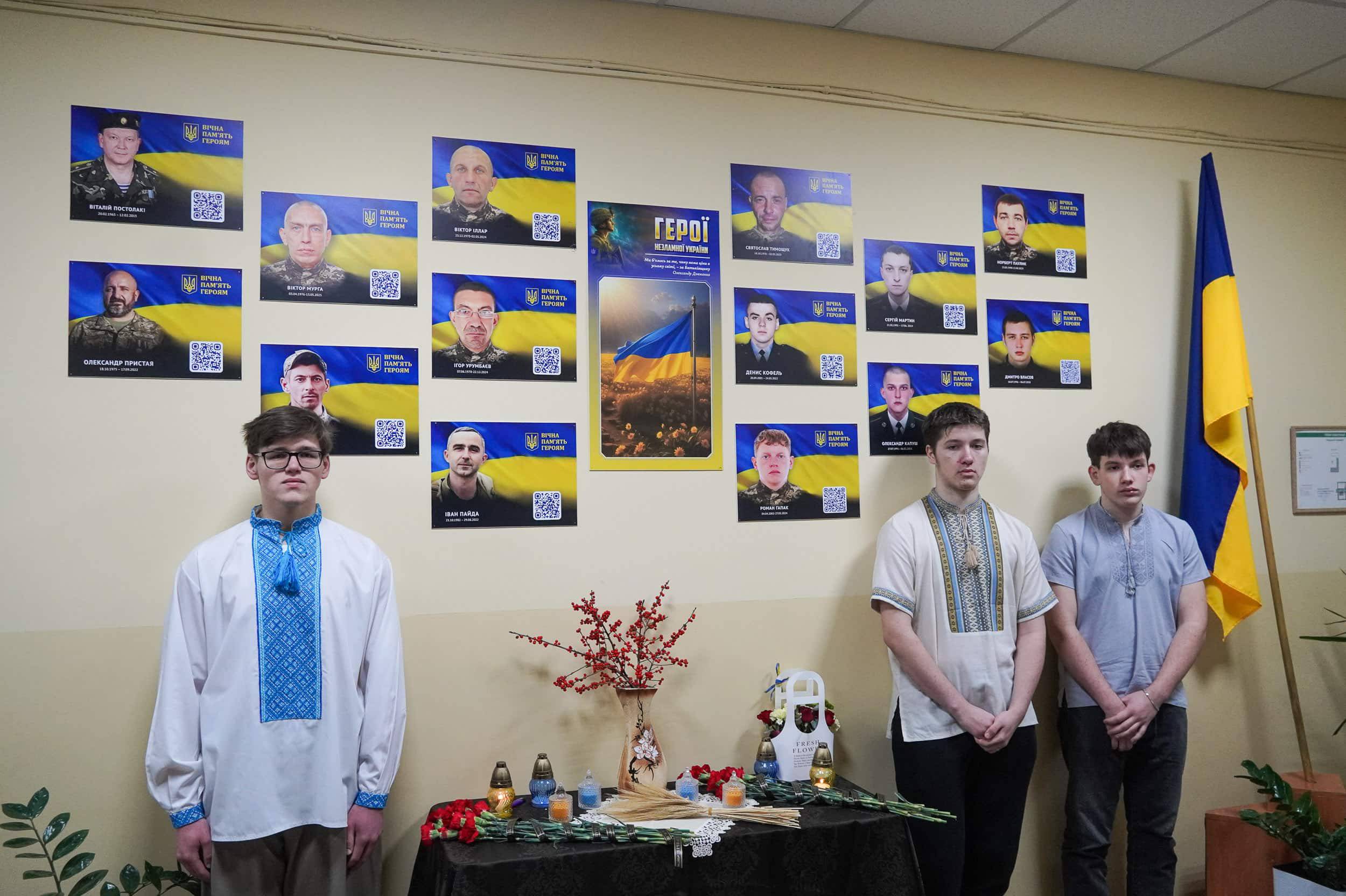 Сьогодні у ліцеї також відкрили Стіну пам’яті, яка вшановує військових та добровольців, які загинули у російсько-українській війні з 2014 року – випускників цього закладу. На ній – світлини й імена 14 полеглих Героїв: