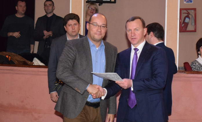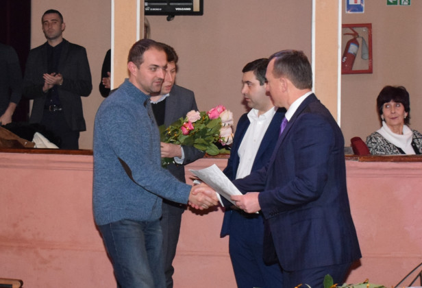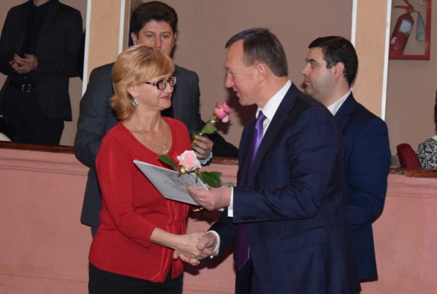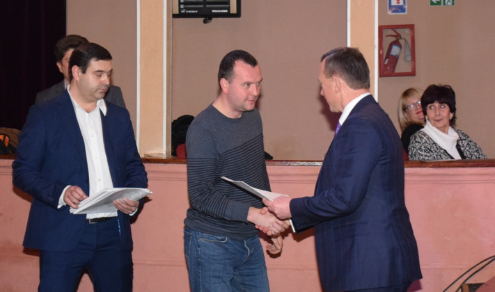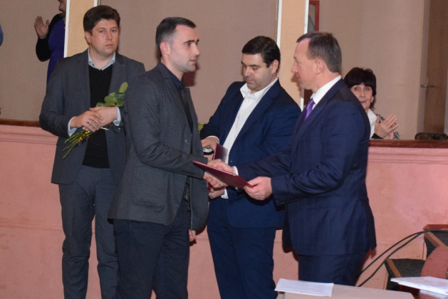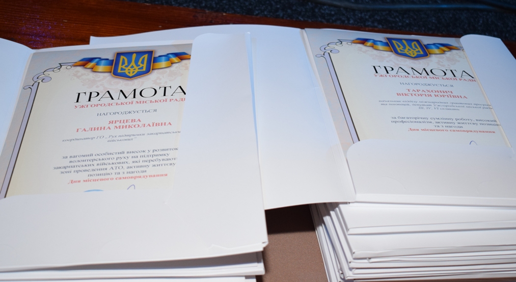 Грамоту Верховної Ради України за вагомий особистий внесок у реформування місцевого самоврядування, багаторічну сумлінну працю міський голова вручив директору КП «Комунальне автотранспортне підприємство 072801», депутату міськради Станіславу Пономарьову, почесну грамоту Закарпатської обласної ради отримали депутат міської ради Віталій Готра, грамоти обласної ради – завідувачці сімейної амбулаторії №7 Еліні Анталовській та директору КП «Ужгородський комбінат комунальних підприємств» Анатолію Сухолову, подяки обласної ради – заступнику директора департаменту міського господарства Олені Яцків, заступнику директора КП «Комунальне автотранспортне підприємство 072801» Василю Грамотнику.