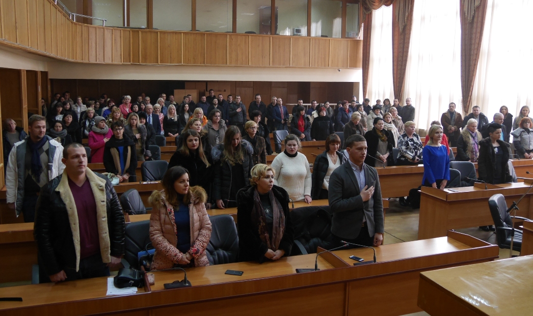 У великій сесійній залі з цієї нагоди зібралися працівники міської ради, депутати, представники громадськості.