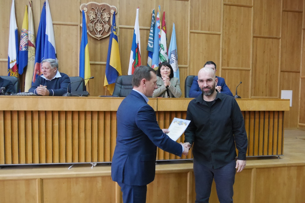 Еміл Ландовський, крім вітання, поділився спогадами, як працювалося у міській раді на початку 90-х, зокрема, коли бюджет міста становив мільярди купоно-карбованців, які кожного дня потрібно було негайно використовувати, бо інакше наступного дня все з’їдала інфляція. Сьогодні, на щастя, міська рада працює у зовсім інших, хоч також непростих умовах, тому Еміл Федорович побажав терпіння та успіхів у роботі, нових досягнень.