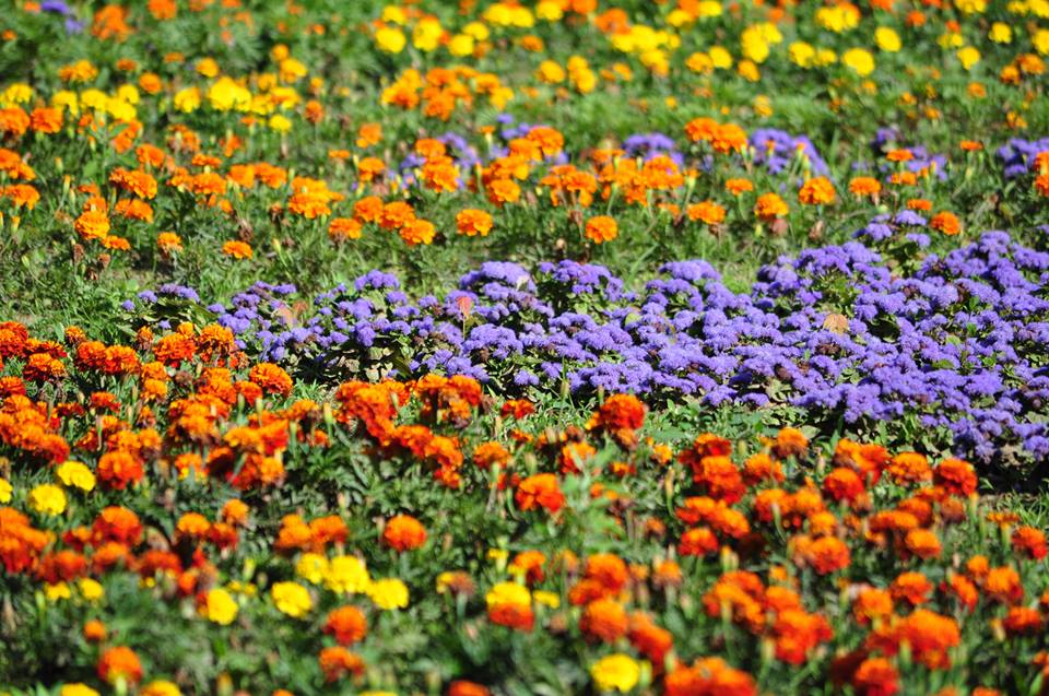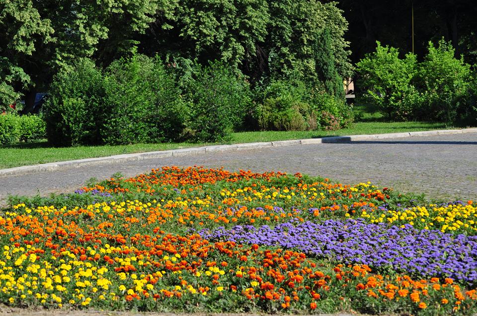 Ужгород буяє квітковим різнобарв’ям – чорнобривцями, пеларгоніями, бегоніями, петуніями, каннами, агератумом, сальвіями, антірінумом, жоржинами.