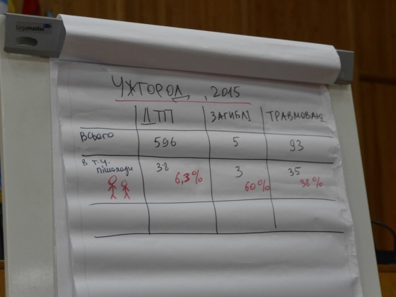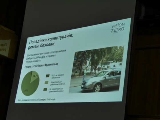 Після дискусії присутнім навели деякі промовисті цифри. Волонтери-студенти, яких представники Vision Zero долучили до роботи, 2 години працювали на вулицях нашого міста, визначали, як водії користуються пасками безпеки. Вибірка склала 1374 водії у чотирьох різних місцях Ужгорода, з’ясувалося, що користуються пасками безпеки лише 11,1% ужгородських водіїв. Хоча питання ременів безпеки – це не питання інфраструктури, і не питання до міської влади. Це, те, що повинен робити кожен в автівці – і водій, і пасажири, адже ремінь безпеки знижує ризики травмування чи смерті наполовину.