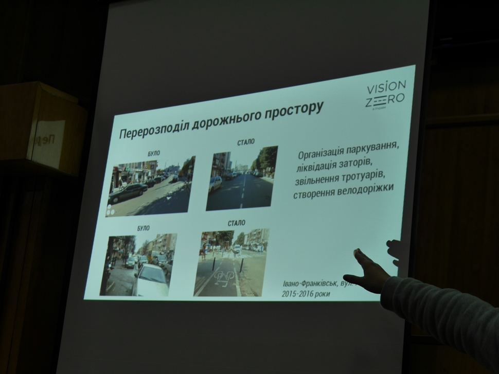 Віктор Загреба та Андрій Коман розповіли про проекти з безпеки дорожнього руху, які вже вдалося реалізувати в їх рідному Івано-Франківську та в інших містах України (працювали також у Дніпрі, Долині, Павлограді тощо), повідомили, що в своїй роботі використовують найкращі західні практики, які довели свою ефективність в різних країнах, а зараз починають впроваджуватися і в Україні.
