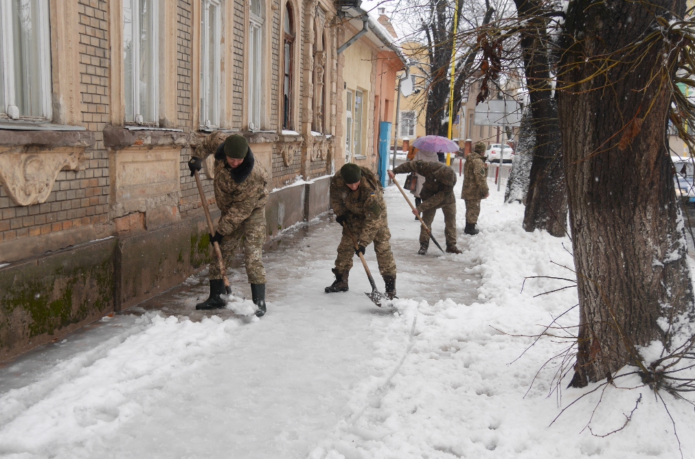 На вулицях міста сьогодні працює 17 одиниць техніки КП «КШЕП», «Ужбудсервіс», «УжАгромікс» та «АВЕ-Ужгород», машини військових. Прибирали сніг 80 комунальників, їм на допомогу прийшли понад 120 військових, долучилися до розчистки снігу й працівники муніципальної поліції. Працівники КШЕПу також займалися прочисткою зливової каналізації.